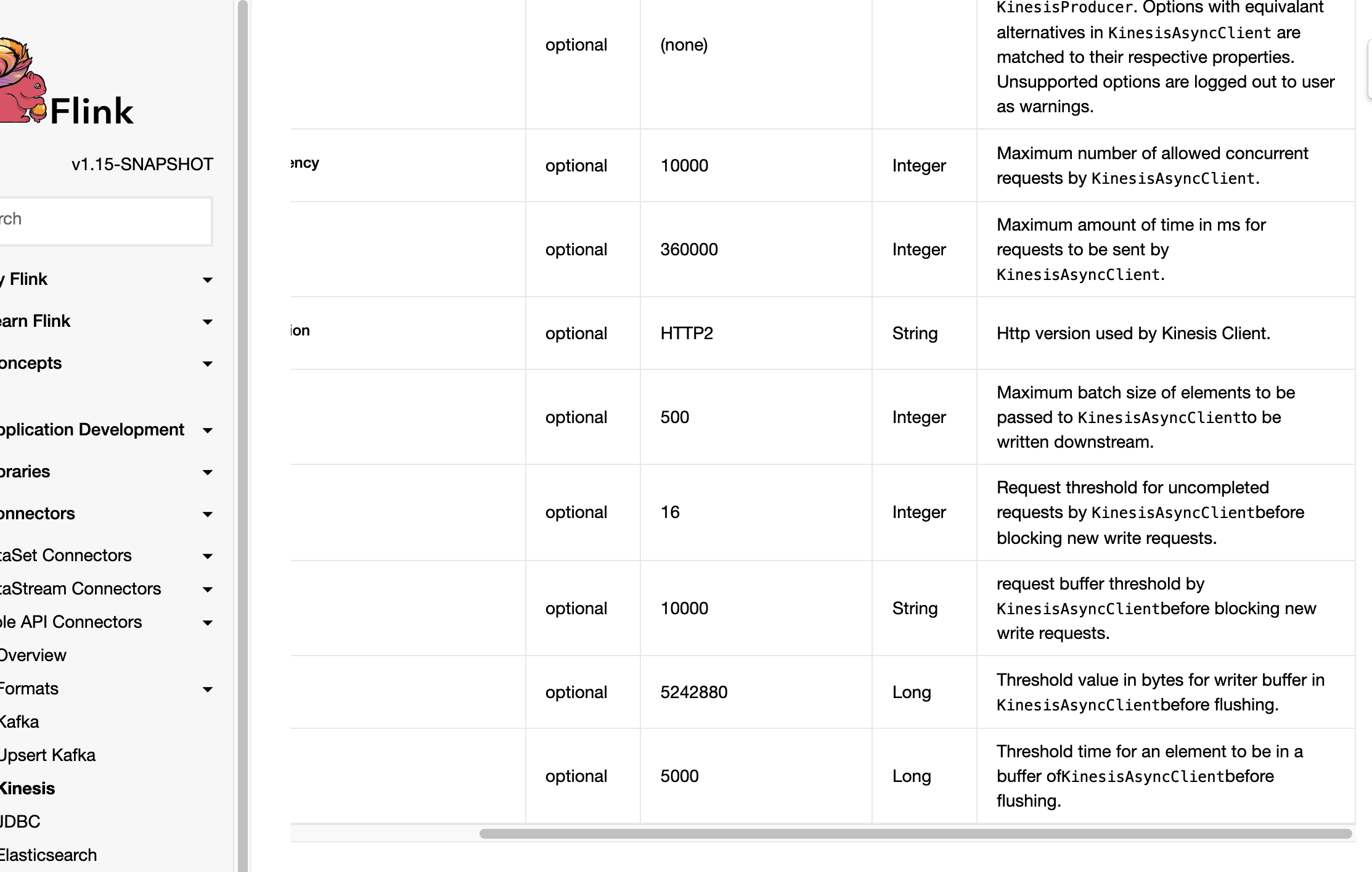 + <td>request buffer threshold by <code>KinesisAsyncClient</code>before