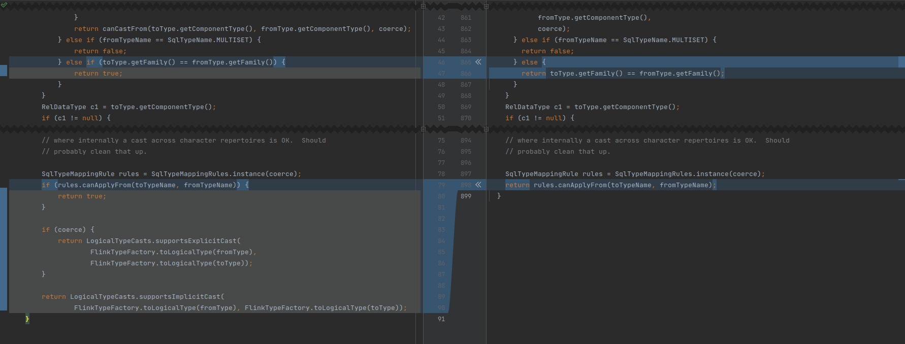 ## What is the purpose of the change The goal of this PR is to allow performing casting to string of complex types ## Brief change log * Add patched `SqlTypeUtil` from calcite. This is required as calcite extension point for casting rules (see `SqlTypeCoercionRule`) is limited to atomic types. For constructed types, the logic is still hardcoded in `SqlTypeUtil`. This is the diff of my patched `SqlTypeUtil`:  * Add test cases ## Verifying this change Added test cases ## Does this pull request potentially affect one of the following parts: - Dependencies (does it add or upgrade a dependency): no - The public API, i.e., is any changed class annotated with `@Public(Evolving)`: yes ## Documentation - Does this pull request introduce a new feature? yes - If yes, how is the feature documented? not documented -- This is an automated message from the Apache Git Service. To respond to the message, please log on to GitHub and use the URL above to go to the specific comment. To unsubscribe, e-mail: [email protected] For queries about this service, please contact Infrastructure at: [email protected]