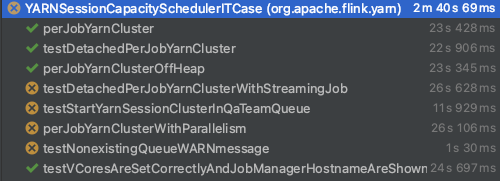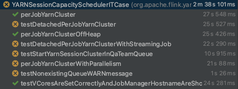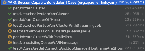 My feeling was that it is not a wrong decision if I start this whole task again from the beginning, so made some initial test running on my local env, with the actual prop file (so which does not include any changes from me). Proposed solution, based on my investigation and my results from the tests: After I did several tests running locally, it seems my first suggestion will not work (so the TimeBasedTriggeringPolicy) due to some file name discrepancy. Local test results with the usage of TimeBasedTriggeringPolicy:  Error message for the test case which is the subject of this pr: `java.lang.AssertionError: Expected string 'Starting TaskManagers' not found in JobManager log: '/Users/zchikan/git_upstream_flink/flink/flink-yarn-tests/../flink-yarn-tests/target/flink-yarn-tests-capacityscheduler/flink-yarn-tests-capacityscheduler-logDir-nm-1_0/application_1644588076877_0002/container_1644588076877_0002_01_000001/jobmanager.log.1-2022-02-11 15:01:57,898'` So as you can see, it just made flaky for me, so definitely we cannot merge as it is. So let’s start from the beginning. The below picture is just a snapshot, but after 10 attempts, the results were the same, so the mentioned test is not flaky for me with the originally used OnStartupTriggeringPolicy, however there were some other tests which failed. Let me add some understanding next to these:  1. Why that test is not flaky for me? This is a conclusion by my investigation and feelings, but since this log4j issue is mostly hardware and filesystem dependent, that can happen I have a slower/faster hardware and/or I have different filesystem related configs. But anyway it was impossible for me to reproduce the flakiness of that test, however as there is a known bug in the log4j community about the OnStartupTriggeringPolicy, I still propose to eliminate the usage of that. 2. Why other tests failed? Based on the error message what I got: ``` `java.lang.AssertionError: Found a file /Users/zchikan/git_upstream_flink/flink/flink-yarn-tests/target/flink-yarn-tests-capacityscheduler/flink-yarn-tests-capacityscheduler-logDir-nm-1_0/application_1644576720361_0001/container_1644576720361_0001_01_000002/taskmanager.log with a prohibited string (one of [Exception, Started [email protected]:8081]). Excerpts: [ 2022-02-11 11:52:22,249 INFO org.apache.flink.runtime.taskexecutor.DefaultJobLeaderService [] - Remove job 035dfa32c1968c6326a629fb2a00f741 from job leader monitoring. 2022-02-11 11:52:22,250 INFO org.apache.flink.runtime.taskexecutor.TaskExecutor [] - Close JobManager connection for job 035dfa32c1968c6326a629fb2a00f741. 2022-02-11 11:53:11,996 INFO org.apache.flink.runtime.taskexecutor.TaskExecutor [] - The heartbeat of ResourceManager with id 2b5f6ba27a24052671cafd4091b8404f timed out. 2022-02-11 11:53:11,996 INFO org.apache.flink.runtime.taskexecutor.TaskExecutor [] - Close ResourceManager connection 2b5f6ba27a24052671cafd4091b8404f. 2022-02-11 11:53:11,997 INFO org.apache.flink.runtime.taskexecutor.TaskExecutor [] - Connecting to ResourceManager akka.tcp://[email protected]:52790/user/rpc/resourcemanager_*(00000000000000000000000000000000). 2022-02-11 11:53:22,016 INFO org.apache.flink.runtime.taskexecutor.TaskExecutor [] - Could not resolve ResourceManager address akka.tcp://[email protected]:52790/user/rpc/resourcemanager_*, retrying in 10000 ms: Could not connect to rpc endpoint under address akka.tcp://[email protected]:52790/user/rpc/resourcemanager_*. 2022-02-11 11:53:32,016 INFO akka.remote.transport.ProtocolStateActor [] - No response from remote for outbound association. Associate timed out after [20000 ms]. 2022-02-11 11:53:32,017 WARN akka.remote.ReliableDeliverySupervisor [] - Association with remote system [akka.tcp://[email protected]:52790] has failed, address is now gated for [50] ms. Reason: [Association failed with [akka.tcp://[email protected]:52790]] Caused by: [No response from remote for outbound association. Associate timed out after [20000 ms].] 2022-02-11 11:53:32,035 INFO org.apache.flink.runtime.taskexecutor.TaskExecutor [] - Could not resolve ResourceManager address akka.tcp://[email protected]:52790/user/rpc/resourcemanager_*, retrying in 10000 ms: Could not connect to rpc endpoint under address akka.tcp://[email protected]:52790/user/rpc/resourcemanager_*. 2022-02-11 11:53:32,068 WARN akka.remote.transport.netty.NettyTransport [] - Remote connection to [null] failed with org.jboss.netty.channel.ConnectTimeoutException: connection timed out: /192.168.0.192:52790 2022-02-11 11:53:32,068 WARN akka.remote.transport.netty.NettyTransport [] - Remote connection to [null] failed with org.jboss.netty.channel.ConnectTimeoutException: connection timed out: /192.168.0.192:52790 ]` ``` After some investigation, it seems like a new kind of bug which is related to AKKA remoting, and as far as I know these kind of errors appear when your HostIP is not matching with the configured seed nodes, so it come from some discrepancy between my local config and akka.remote configuration. Or (and in my case it can be the possible reason) the association with remote system has failed because the executor likely ran out memory. And it is possible in my case, because after some invalidate cache round, and after a while the tests run successfully with my NEW changes which are: - the deletion of OnStartupTriggeringPolicy (and not use TimeBasedTriggeringPolicy) - The addition of CronTriggeringPolicy  (Short comment: after this only one occurrence, I always received the same test results with and without my changes) So a solution (if we would like to use any, next to the DefaultRolloverStrategy) can be the usage of the CronTriggeringPolicy. In my last commit, I was delete the TimeBasedTriggeringPolicy and add the CronTriggeringPolicy with a schedule like the triggering should happen in every hours (it can be changed if you would You can see the usual results of local test running, after my changes in the below picture:  However as I mentioned above