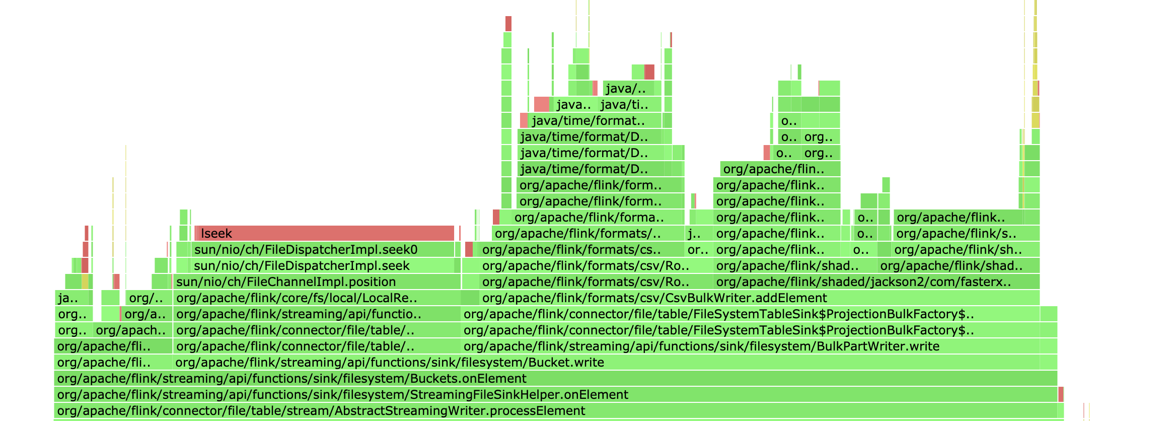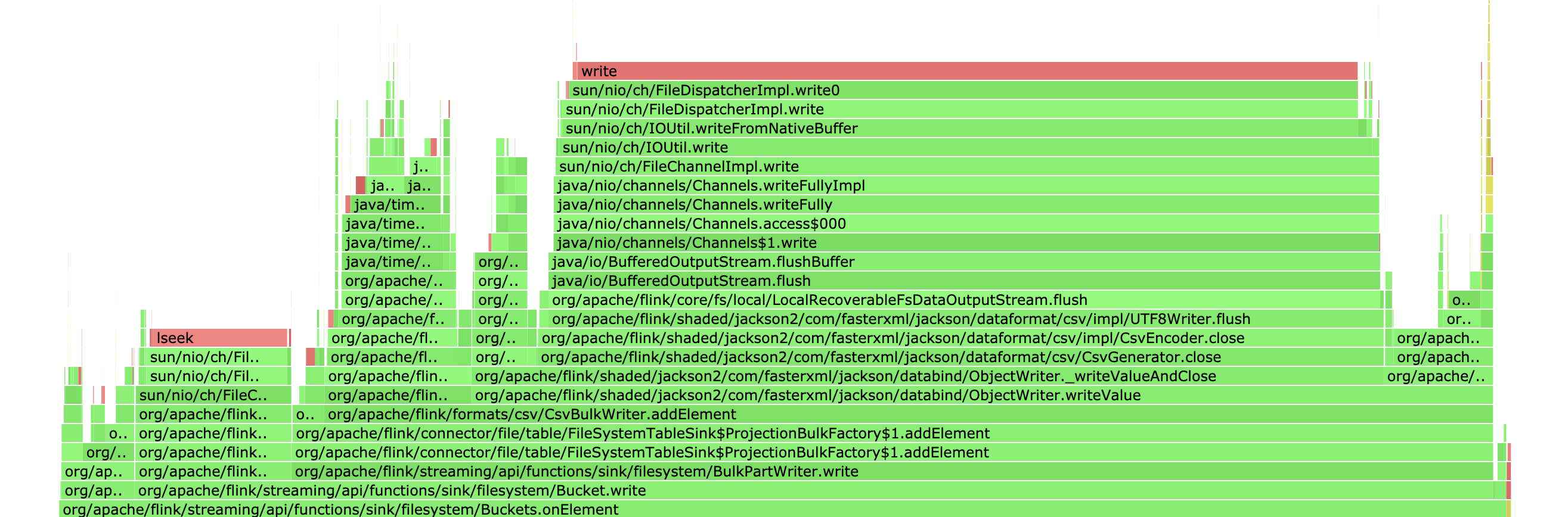 Before this fix, most of the time is spent in flushing, shown as in the following flame graph:  After this fix, the problem will be fixed, shown as in the following flame graph:  -- This is an automated message from the Apache Git Service. To respond to the message, please log on to GitHub and use the URL above to go to the specific comment. To unsubscribe, e-mail: [email protected] For queries about this service, please contact Infrastructure at: [email protected]
