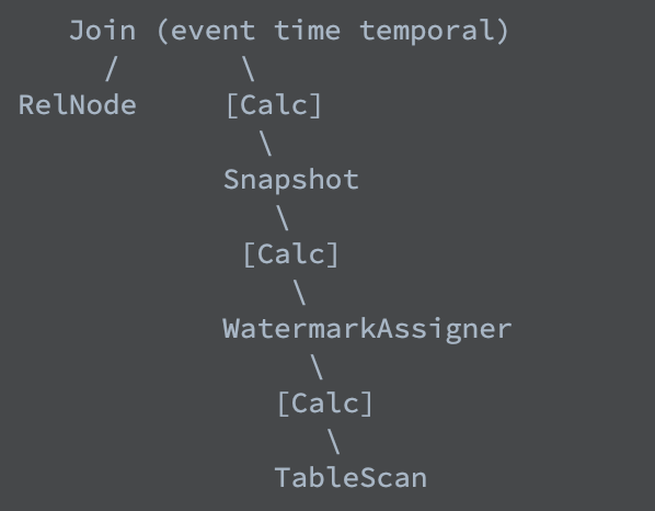 ########## flink-table/flink-table-planner/src/main/java/org/apache/flink/table/planner/calcite/FlinkSnapshotConverter.java: ########## @@ -0,0 +1,95 @@ +/* + * Licensed to the Apache Software Foundation (ASF) under one + * or more contributor license agreements. See the NOTICE file + * distributed with this work for additional information + * regarding copyright ownership. The ASF licenses this file + * to you under the Apache License, Version 2.0 (the + * "License"); you may not use this file except in compliance + * with the License. You may obtain a copy of the License at + * + * http://www.apache.org/licenses/LICENSE-2.0 + * + * Unless required by applicable law or agreed to in writing, software + * distributed under the License is distributed on an "AS IS" BASIS, + * WITHOUT WARRANTIES OR CONDITIONS OF ANY KIND, either express or implied. + * See the License for the specific language governing permissions and + * limitations under the License. + */ + +package org.apache.flink.table.planner.calcite; + +import org.apache.flink.table.planner.plan.nodes.logical.FlinkLogicalCalc; +import org.apache.flink.table.planner.plan.nodes.logical.FlinkLogicalSnapshot; +import org.apache.flink.table.planner.plan.nodes.logical.FlinkLogicalTableSourceScan; +import org.apache.flink.table.planner.plan.nodes.logical.FlinkLogicalWatermarkAssigner; +import org.apache.flink.table.planner.plan.schema.TimeIndicatorRelDataType; + +import org.apache.calcite.rel.RelHomogeneousShuttle; +import org.apache.calcite.rel.RelNode; +import org.apache.calcite.rel.type.RelDataType; + +/** + * Traverses a {@link RelNode} tree and update the child node of {@link FlinkLogicalSnapshot} to set + * {@link FlinkLogicalTableSourceScan#eventTimeSnapshot} property. + * + * <p>Note: only snapshot on event time period will update the child {@link + * FlinkLogicalTableSourceScan}. + */ +public final class FlinkSnapshotConverter extends RelHomogeneousShuttle { Review Comment:  a correction here: there're 8 variants not 4 -- This is an automated message from the Apache Git Service. To respond to the message, please log on to GitHub and use the URL above to go to the specific comment. To unsubscribe, e-mail: [email protected] For queries about this service, please contact Infrastructure at: [email protected]