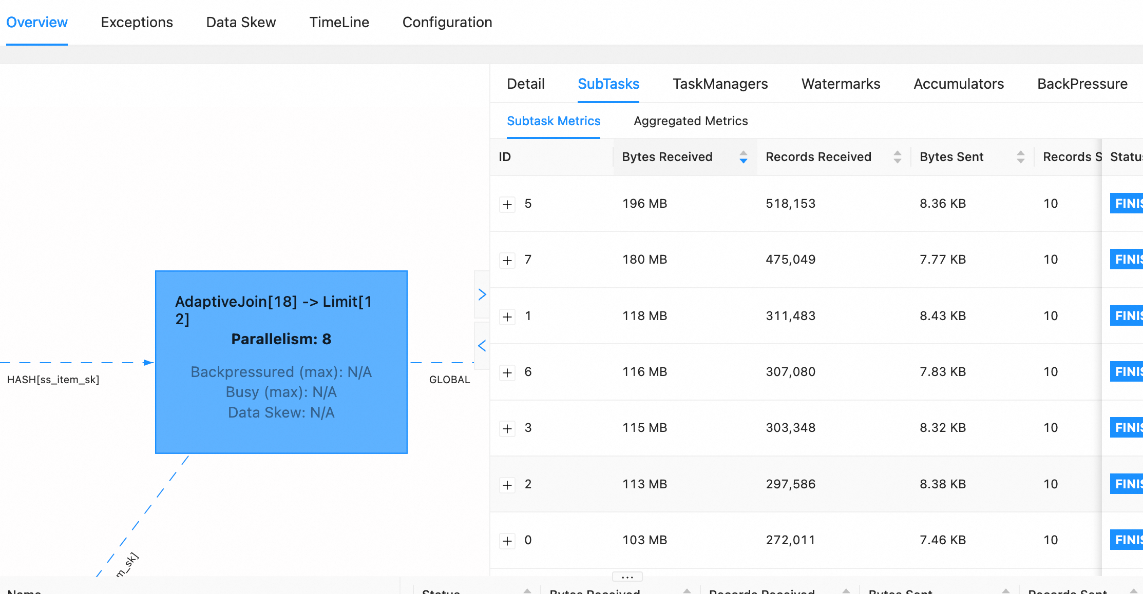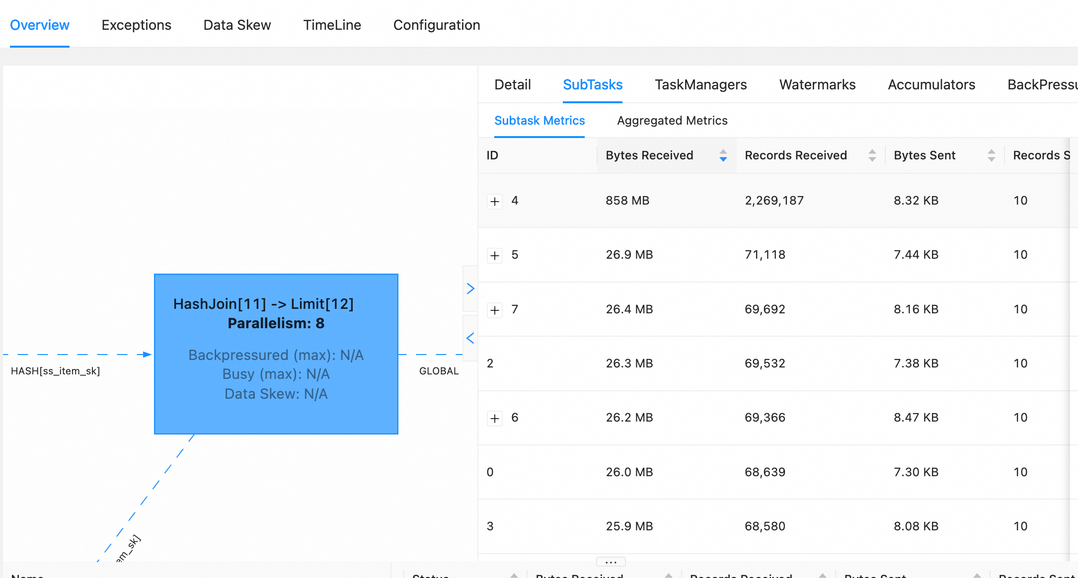 > median data volume processed by concurrent join tasks is less than the skew