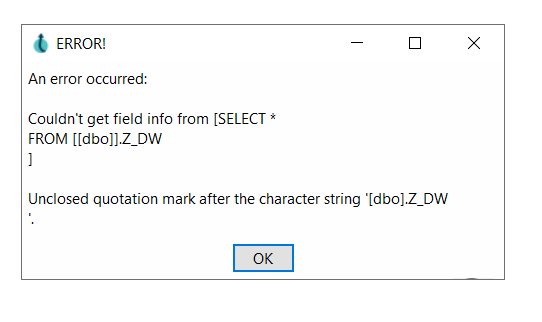 ### Apache Hop version? 2.3 ### Java version? 11 ### Operating system Windows ### What happened? When I use _table input_ transform and I select a table from a db in the query the program automatically adds square brackets and this lead to an error because the query results wrong. If I manually delete the extra square brackets it works but in this way I can't automatically select all the fields on the table if not with _select *_. This problem is present with all type of db connection, but I noticed that if the schema is beetween _" "_ the problem is not present.  ### Issue Priority Priority: 3 ### Issue Component Component: Actions -- This is an automated message from the Apache Git Service. To respond to the message, please log on to GitHub and use the URL above to go to the specific comment. To unsubscribe, e-mail: [email protected] For queries about this service, please contact Infrastructure at: [email protected]