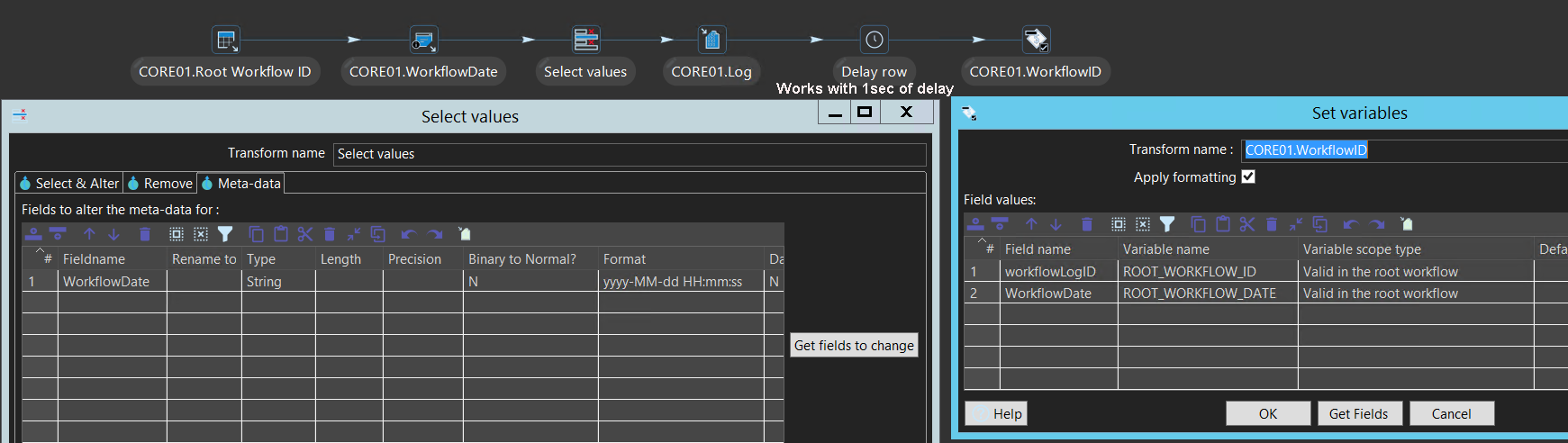It seems a very weird behaviour. I continued testing with this issue since I got similar effects in other occasions. It doesn't seem to be dependent on the Wait for SQL step and rather indicates an issue how string and date values are in general passed to the variables of a workflow or pipeline. I do have a pipeline, where I write a date value (system date), which was altered to a string (Select values), to the variables of the workflow above. This step fails with version (b) from above. However, if I put in a delay row step of 1sec, it runs smoothly without any errors. Seems to be an issue of the engine imho. works  doesn't work  -- This is an automated message from the Apache Git Service. To respond to the message, please log on to GitHub and use the URL above to go to the specific comment. To unsubscribe, e-mail: [email protected] For queries about this service, please contact Infrastructure at: [email protected]