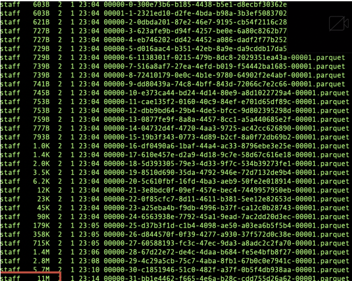more than 10M(splitTargetSize), Which is 11M in this example