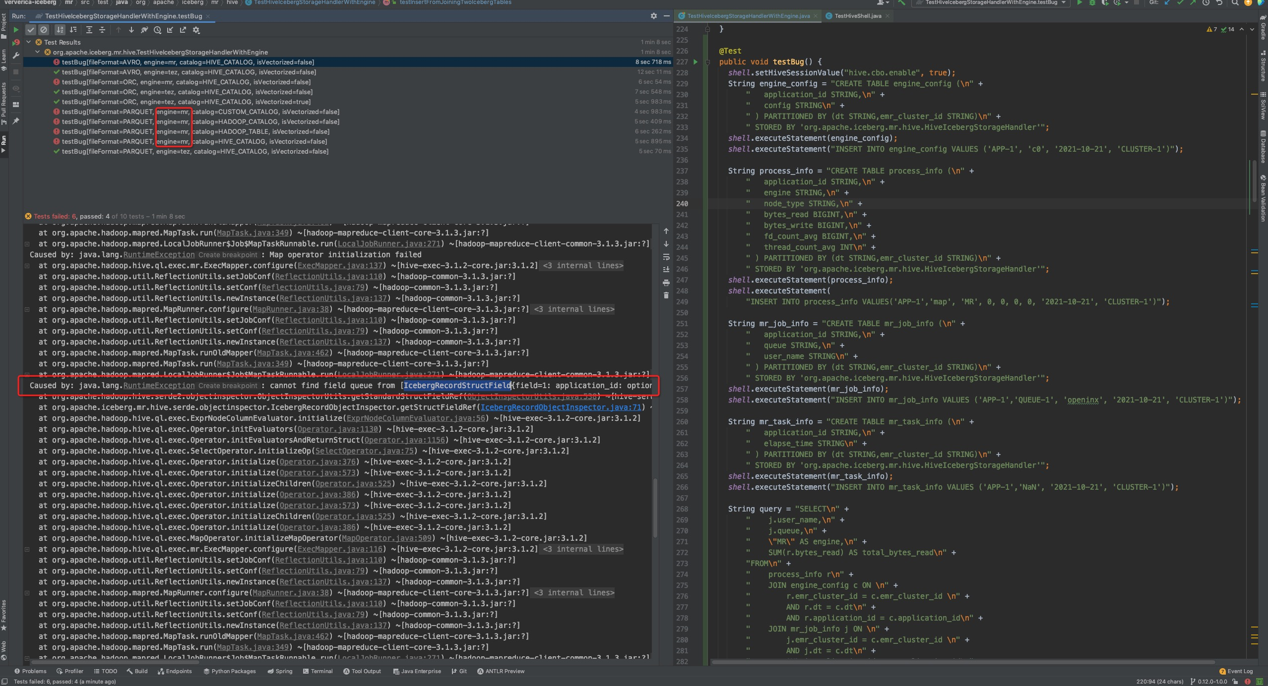 I encountered an iceberg bug when executing Hive query to iceberg table. I can reproduce this by writing an unit test: https://github.com/apache/iceberg/pull/3392/files#diff-514a9a4a1b39ecf3ed48a4099e0d9335f7eede202cf72adc889f9f75cb810cfdR227  I think this bug is related this PR (https://github.com/apache/iceberg/pull/2052), but I'm not quite familiar with hive internal. @pvary , @qphien, @marton-bod Could you help to check this ? -- This is an automated message from the Apache Git Service. To respond to the message, please log on to GitHub and use the URL above to go to the specific comment. To unsubscribe, e-mail: [email protected] For queries about this service, please contact Infrastructure at: [email protected] --------------------------------------------------------------------- To unsubscribe, e-mail: [email protected] For additional commands, e-mail: [email protected]