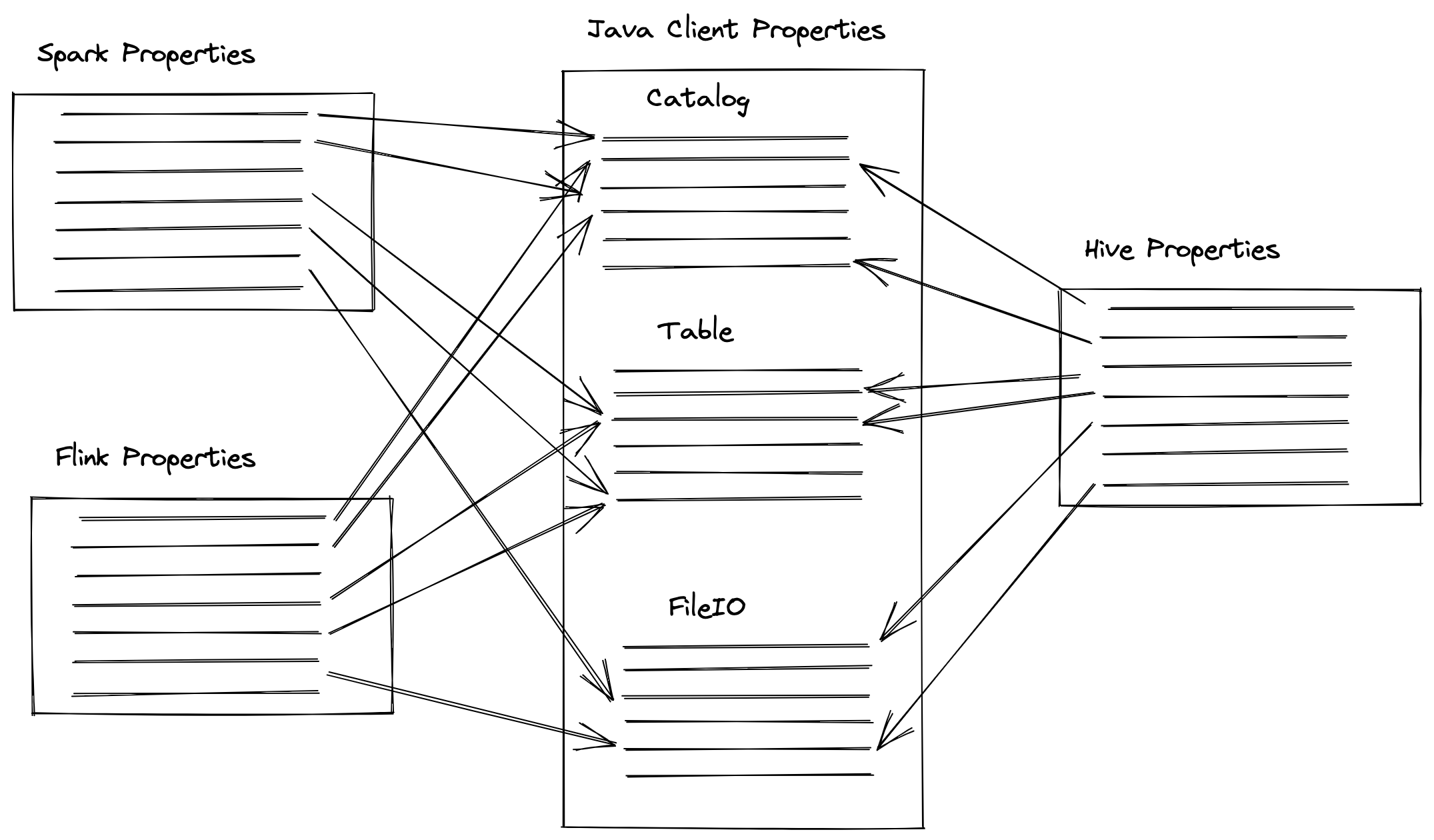 ########## docs/configurations.md: ########## @@ -0,0 +1,227 @@ +--- +title: "Configuration" +url: configuration +menu: main +weight: 1201 +--- +<!-- + - Licensed to the Apache Software Foundation (ASF) under one or more + - contributor license agreements. See the NOTICE file distributed with + - this work for additional information regarding copyright ownership. + - The ASF licenses this file to You under the Apache License, Version 2.0 + - (the "License"); you may not use this file except in compliance with + - the License. You may obtain a copy of the License at + - + - http://www.apache.org/licenses/LICENSE-2.0 + - + - Unless required by applicable law or agreed to in writing, software + - distributed under the License is distributed on an "AS IS" BASIS, + - WITHOUT WARRANTIES OR CONDITIONS OF ANY KIND, either express or implied. + - See the License for the specific language governing permissions and + - limitations under the License. + --> + +# Configuration + +### Table Read Properties + +| Property | Default | Description | +| --------------------------------- | ------------------ | ------------------------------------------------------ | +| read.split.target-size | 134217728 (128 MB) | Target size when combining data input splits | +| read.split.metadata-target-size | 33554432 (32 MB) | Target size when combining metadata input splits | +| read.split.planning-lookback | 10 | Number of bins to consider when combining input splits | +| read.split.open-file-cost | 4194304 (4 MB) | The estimated cost to open a file, used as a minimum weight when combining splits. | +| read.parquet.vectorization.enabled| false | Enables parquet vectorized reads | +| read.parquet.vectorization.batch-size| 5000 | The batch size for parquet vectorized reads | +| read.orc.vectorization.enabled | false | Enables orc vectorized reads | +| read.orc.vectorization.batch-size | 5000 | The batch size for orc vectorized reads | + +### Table Write Properties + +| Property | Default | Description | +| ---------------------------------- | ------------------ | -------------------------------------------------- | +| write.format.default | parquet | Default file format for the table; parquet, avro, or orc | +| write.delete.format.default | data file format | Default delete file format for the table; parquet, avro, or orc | +| write.parquet.row-group-size-bytes | 134217728 (128 MB) | Parquet row group size | +| write.parquet.page-size-bytes | 1048576 (1 MB) | Parquet page size | +| write.parquet.dict-size-bytes | 2097152 (2 MB) | Parquet dictionary page size | +| write.parquet.compression-codec | gzip | Parquet compression codec: zstd, brotli, lz4, gzip, snappy, uncompressed | +| write.parquet.compression-level | null | Parquet compression level | +| write.avro.compression-codec | gzip | Avro compression codec: gzip(deflate with 9 level), zstd, snappy, uncompressed | +| write.avro.compression-level | null | Avro compression level | +| write.orc.stripe-size-bytes | 67108864 (64 MB) | Define the default ORC stripe size, in bytes | +| write.orc.block-size-bytes | 268435456 (256 MB) | Define the default file system block size for ORC files | +| write.orc.compression-codec | zlib | ORC compression codec: zstd, lz4, lzo, zlib, snappy, none | +| write.orc.compression-strategy | speed | ORC compression strategy: speed, compression | +| write.location-provider.impl | null | Optional custom implementation for LocationProvider | +| write.metadata.compression-codec | none | Metadata compression codec; none or gzip | +| write.metadata.metrics.default | truncate(16) | Default metrics mode for all columns in the table; none, counts, truncate(length), or full | +| write.metadata.metrics.column.col1 | (not set) | Metrics mode for column 'col1' to allow per-column tuning; none, counts, truncate(length), or full | +| write.target-file-size-bytes | 536870912 (512 MB) | Controls the size of files generated to target about this many bytes | +| write.delete.target-file-size-bytes| 67108864 (64 MB) | Controls the size of delete files generated to target about this many bytes | +| write.distribution-mode | none | Defines distribution of write data: __none__: don't shuffle rows; __hash__: hash distribute by partition key ; __range__: range distribute by partition key or sort key if table has an SortOrder | +| write.delete.distribution-mode | hash | Defines distribution of write delete data | +| write.wap.enabled | false | Enables write-audit-publish writes | +| write.summary.partition-limit | 0 | Includes partition-level summary stats in snapshot summaries if the changed partition count is less than this limit | +| write.metadata.delete-after-commit.enabled | false | Controls whether to delete the oldest version metadata files after commit | +| write.metadata.previous-versions-max | 100 | The max number of previous version metadata files to keep before deleting after commit | +| write.spark.fanout.enabled | false | Enables the fanout writer in Spark that does not require data to be clustered; uses more memory | +| write.object-storage.enabled | false | Enables the object storage location provider that adds a hash component to file paths | +| write.data.path | table location + /data | Base location for data files | +| write.metadata.path | table location + /metadata | Base location for metadata files | +| write.delete.mode | copy-on-write | Mode used for delete commands: copy-on-write or merge-on-read (v2 only) | +| write.delete.isolation-level | serializable | Isolation level for delete commands: serializable or snapshot | +| write.update.mode | copy-on-write | Mode used for update commands: copy-on-write or merge-on-read (v2 only) | +| write.update.isolation-level | serializable | Isolation level for update commands: serializable or snapshot | +| write.merge.mode | copy-on-write | Mode used for merge commands: copy-on-write or merge-on-read (v2 only) | +| write.merge.isolation-level | serializable | Isolation level for merge commands: serializa