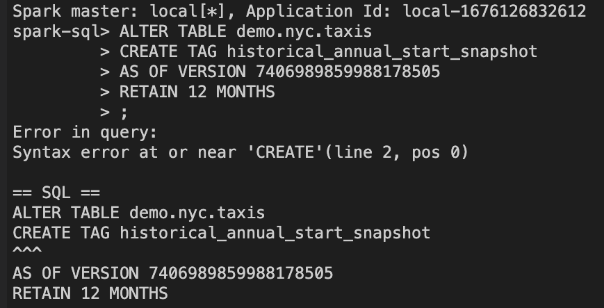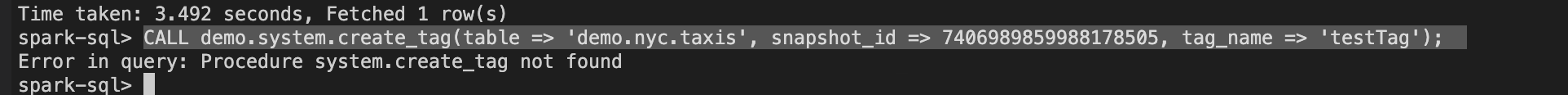CALL demo.system.create_tag(table => 'demo.nyc.taxis', snapshot_id =>