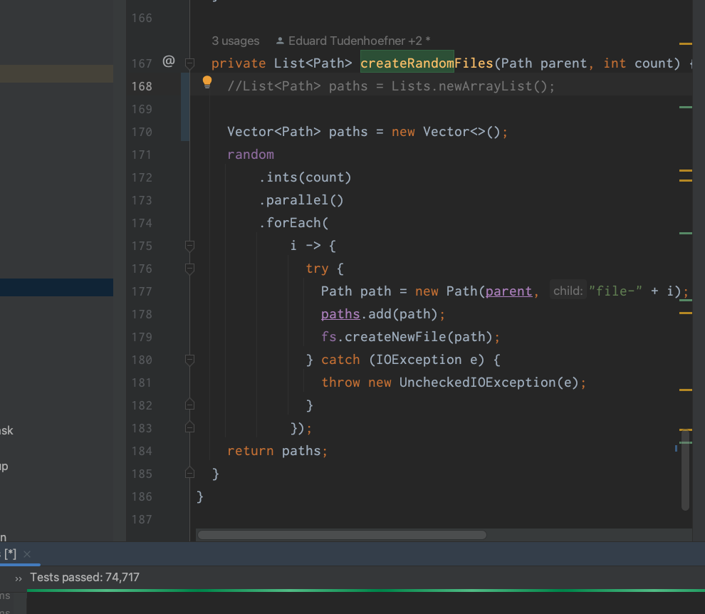private List<Path> createRandomFiles(Path parent, int count) {