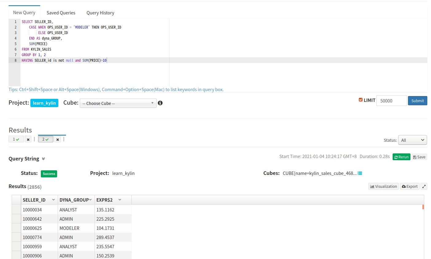 FROM KYLIN_SALES