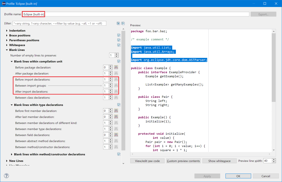 ########## File path: content/resources/developers/maven-eclipse.importorder ########## @@ -0,0 +1,23 @@ +# Licensed to the Apache Software Foundation (ASF) under one +# or more contributor license agreements. See the NOTICE file +# distributed with this work for additional information +# regarding copyright ownership. The ASF licenses this file +# to you under the Apache License, Version 2.0 (the +# "License"); you may not use this file except in compliance +# with the License. You may obtain a copy of the License at +# +# http://www.apache.org/licenses/LICENSE-2.0 +# +# Unless required by applicable law or agreed to in writing, +# software distributed under the License is distributed on an +# "AS IS" BASIS, WITHOUT WARRANTIES OR CONDITIONS OF ANY +# KIND, either express or implied. See the License for the +# specific language governing permissions and limitations +# under the License. +# +#Organize Import Order +#Mon Nov 29 10:45:56 CET 2021 +0=javax +1=java +2= +3=\# Review comment: The order of import groups is the same; blank lines are controlled in a different section (Preferences → Java → Code Style → Formatter) that describes all Java formatting rules.  The screenshot shows the default profile which specifies a single blank line between import groups. -- This is an automated message from the Apache Git Service. To respond to the message, please log on to GitHub and use the URL above to go to the specific comment. To unsubscribe, e-mail: [email protected] For queries about this service, please contact Infrastructure at: [email protected]