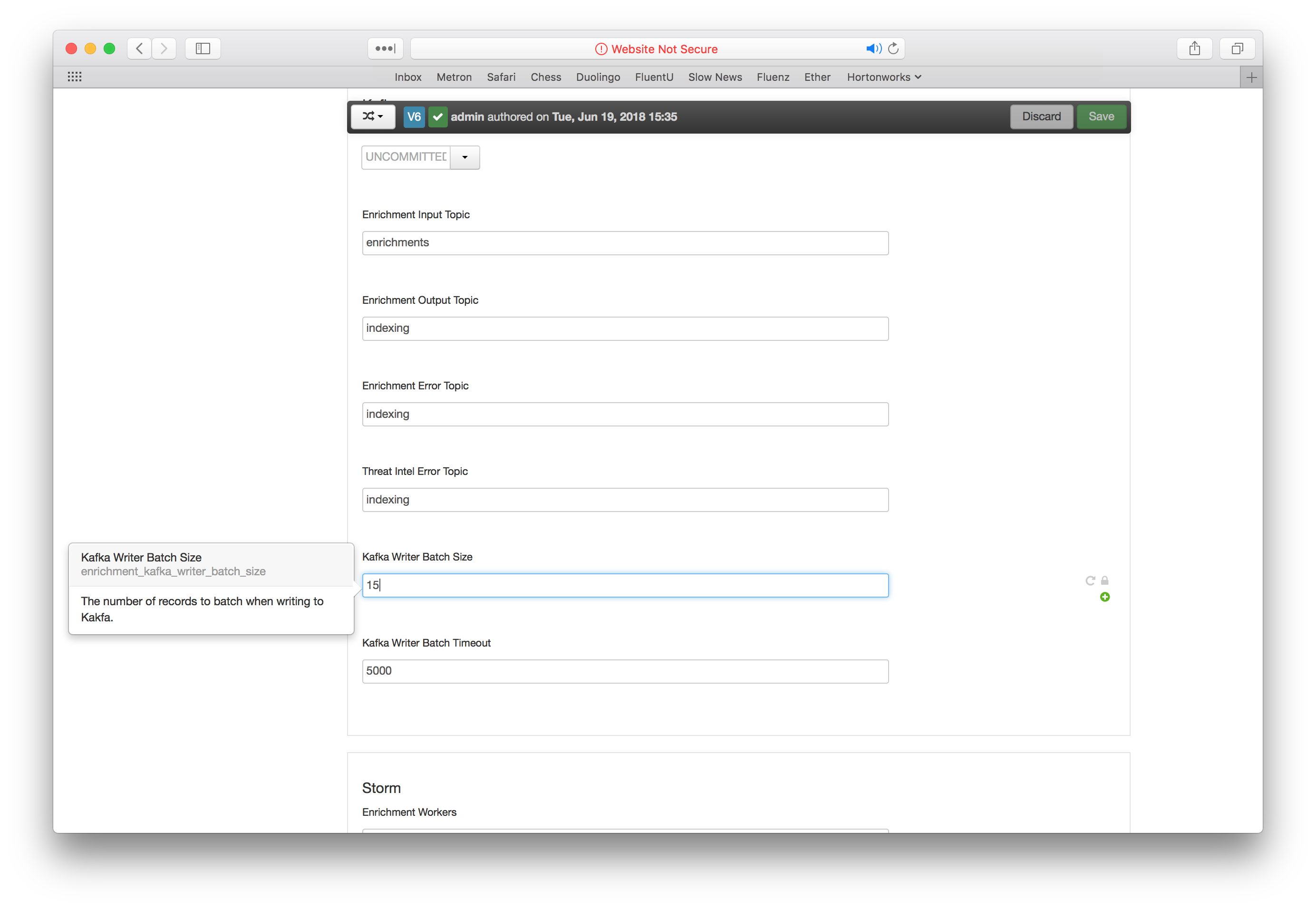 * Metron > Configs > Enrichment > Kafka