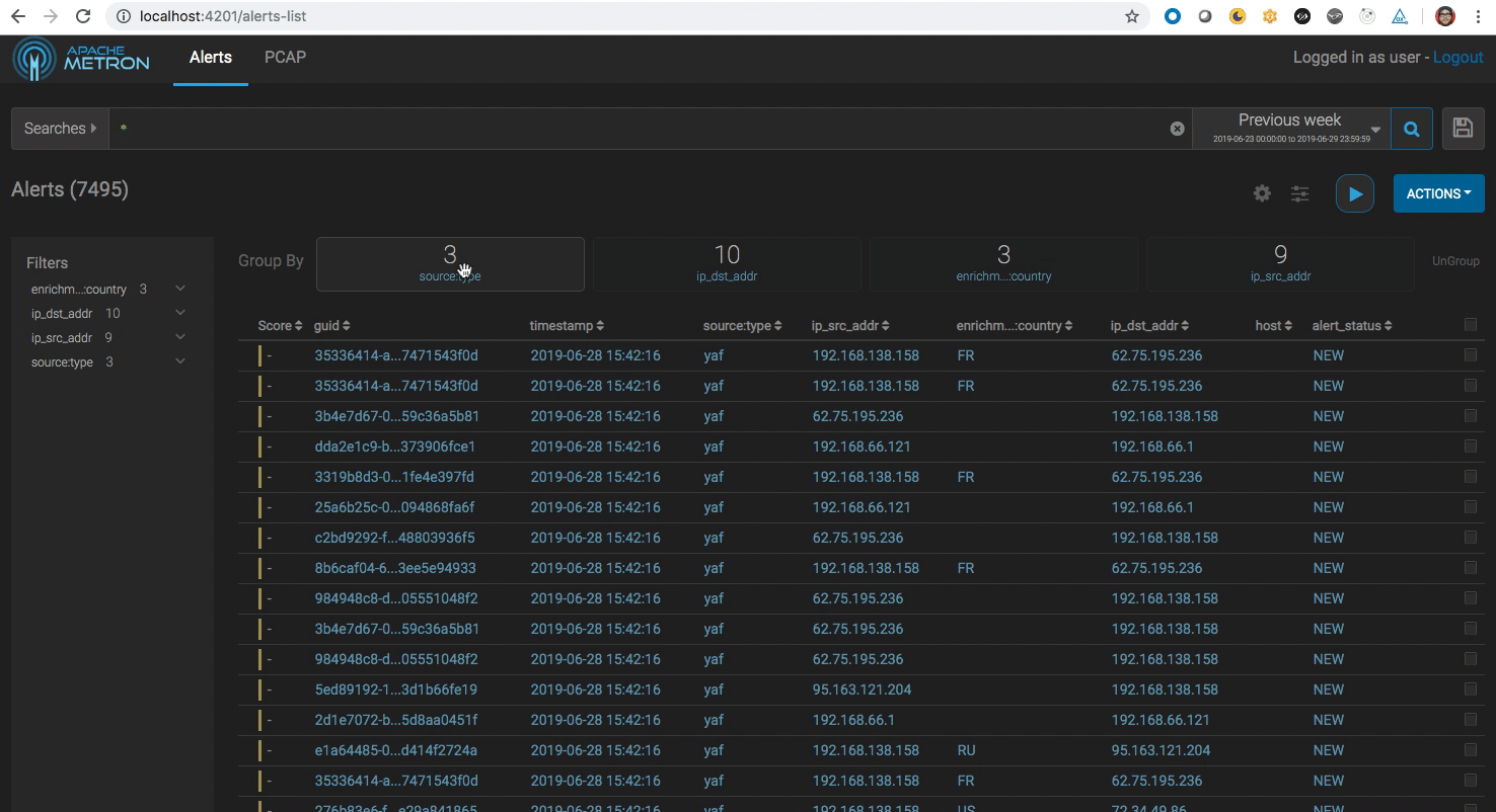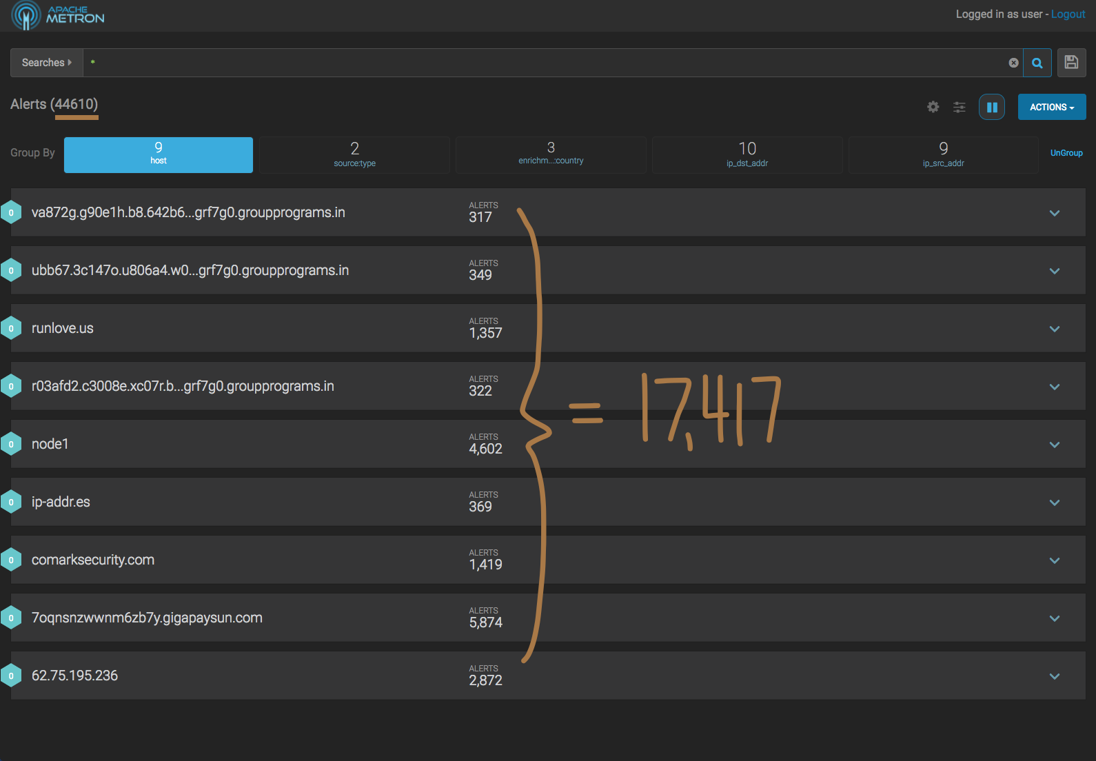 sardell opened a new pull request #1455: METRON-2174: Grouped alerts total can differ from search alerts total URL: https://github.com/apache/metron/pull/1455 ## Contributor Comments Link to ASF ticket [here](https://issues.apache.org/jira/browse/METRON-2174). In the Alerts UI, when a user searches and then filters by a group or groups, the total amount of grouped alerts can differ from the total amount of alerts from the search.  As a simple solution, I've added a grouped alerts total whenever you filter by group.  ## Testing Open the Alerts UI and perform a search that produces some results. Filter by group (I used enrichments:geo:ip_dst_addr:country). You should see the grouped alerts total displayed below the overall total. ## Pull Request Checklist Thank you for submitting a contribution to Apache Metron. Please refer to our [Development Guidelines](https://cwiki.apache.org/confluence/pages/viewpage.action?pageId=61332235) for the complete guide to follow for contributions. Please refer also to our [Build Verification Guidelines](https://cwiki.apache.org/confluence/display/METRON/Verifying+Builds?show-miniview) for complete smoke testing guides. In order to streamline the review of the contribution we ask you follow these guidelines and ask you to double check the following: ### For all changes: - [ ] Is there a JIRA ticket associated with this PR? If not one needs to be created at [Metron Jira](https://issues.apache.org/jira/browse/METRON/?selectedTab=com.atlassian.jira.jira-projects-plugin:summary-panel). - [ ] Does your PR title start with METRON-XXXX where XXXX is the JIRA number you are trying to resolve? Pay particular attention to the hyphen "-" character. - [ ] Has your PR been rebased against the latest commit within the target branch (typically master)? ### For code changes: - [ ] Have you included steps to reproduce the behavior or problem that is being changed or addressed? - [ ] Have you included steps or a guide to how the change may be verified and tested manually? - [ ] Have you ensured that the full suite of tests and checks have been executed in the root metron folder via: ``` mvn -q clean integration-test install && dev-utilities/build-utils/verify_licenses.sh ``` - [ ] Have you written or updated unit tests and or integration tests to verify your changes? - [ ] If adding new dependencies to the code, are these dependencies licensed in a way that is compatible for inclusion under [ASF 2.0](http://www.apache.org/legal/resolved.html#category-a)? - [ ] Have you verified the basic functionality of the build by building and running locally with Vagrant full-dev environment or the equivalent? ### For documentation related changes: - [ ] Have you ensured that format looks appropriate for the output in which it is rendered by building and verifying the site-book? If not then run the following commands and the verify changes via `site-book/target/site/index.html`: ``` cd site-book mvn site ``` - [ ] Have you ensured that any documentation diagrams have been updated, along with their source files, using [draw.io](https://www.draw.io/)? See [Metron Development Guidelines](https://cwiki.apache.org/confluence/display/METRON/Development+Guidelines) for instructions. #### Note: Please ensure that once the PR is submitted, you check travis-ci for build issues and submit an update to your PR as soon as possible. It is also recommended that [travis-ci](https://travis-ci.org) is set up for your personal repository such that your branches are built there before submitting a pull request.
