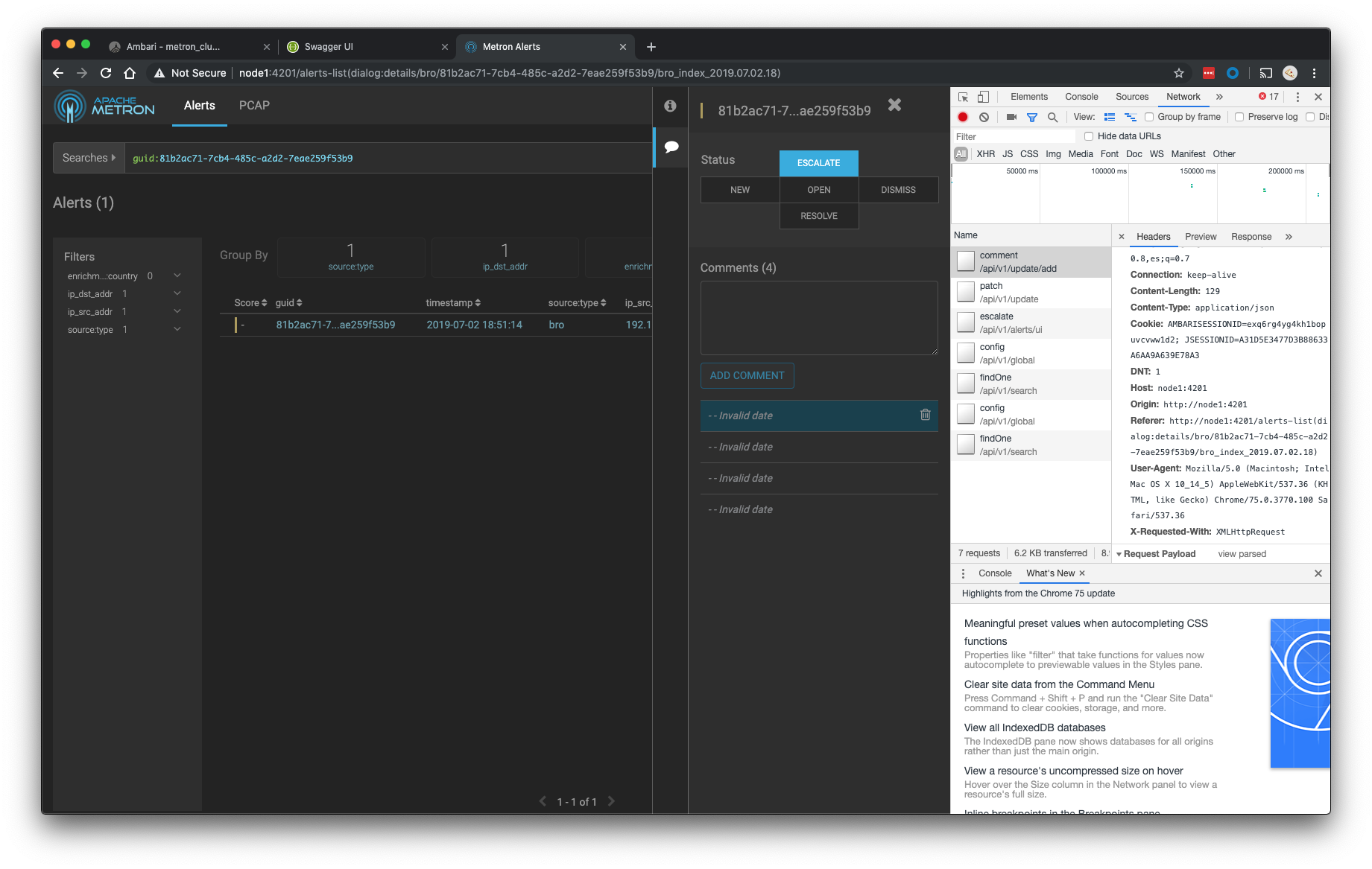 nickwallen commented on issue #1454: METRON-2172 Solr Updates Not Tested in Integration Test URL: https://github.com/apache/metron/pull/1454#issuecomment-511993340 I found a problem with this change. The Alerts UI does not properly display comments when indexing into Elasticsearch. See screenshot.  The problem is that we serialize comments into Elasticsearch differently than we do Solr. For Elasticsearch we write the comments as a list of maps. For Solr, we write a list of JSON strings. I do not understand why we serialize these differently, but I definitely don't want to change that behavior in this PR. With this change, it wrote the comments as a list of JSON strings for both Solr and Elasticsearch. When running against Elasticsearch, the Alerts UI is then passed a raw JSON string that it does not know how to handle; hence the"Invalid Date" error in the Alerts UI. To really fix this, I would need to refactor deeper into the Elasticsearch side of the DAOs and have them also use the `DocumentBuilder` abstraction. I would also need to add a test to catch this issue. As mentioned in the PR description we (de)serialize comments in many different places and this should ultimately be cleaned up and more thoroughly tested. I am going to shelve this refactor for later. Until then, the minimal necessary fixes to test current behavior is in #1456 . Its less than ideal, but it gets the job done.