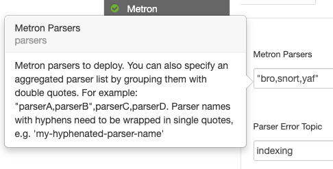 mmiklavc commented on issue #1471: METRON-2194 Update Ambari tooltip to specify single quotes for parser names with hyphens URL: https://github.com/apache/metron/pull/1471#issuecomment-515554192 Looks like this