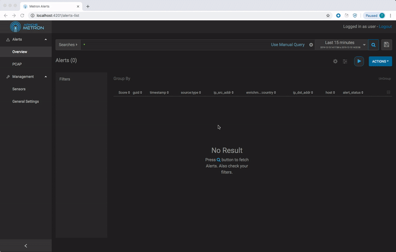 ruffle1986 edited a comment on issue #1533: METRON-2292: [UI] Manual query can't be saved on the Alerts UI URL: https://github.com/apache/metron/pull/1533#issuecomment-565441784 According to the gif, I tried to reproduce the problem by following the exact same steps. Could you please provide a detailed guide on what you did so I can do the same? I might have missed something. This is what I did: 1. Get all the alerts of he last 1 year. 2. Click on the `source:type` cell to filter by a certain type like bro. 3. Switch to manual query and save the search 4. Then change the query in manual query mode and remove the time related stuff 5. Click on the magnifier to apply the query 6. Save the new query with a different name 7. Load the previous query (the time should be there) 8. Load the recently saved query (the time is not there as expected)