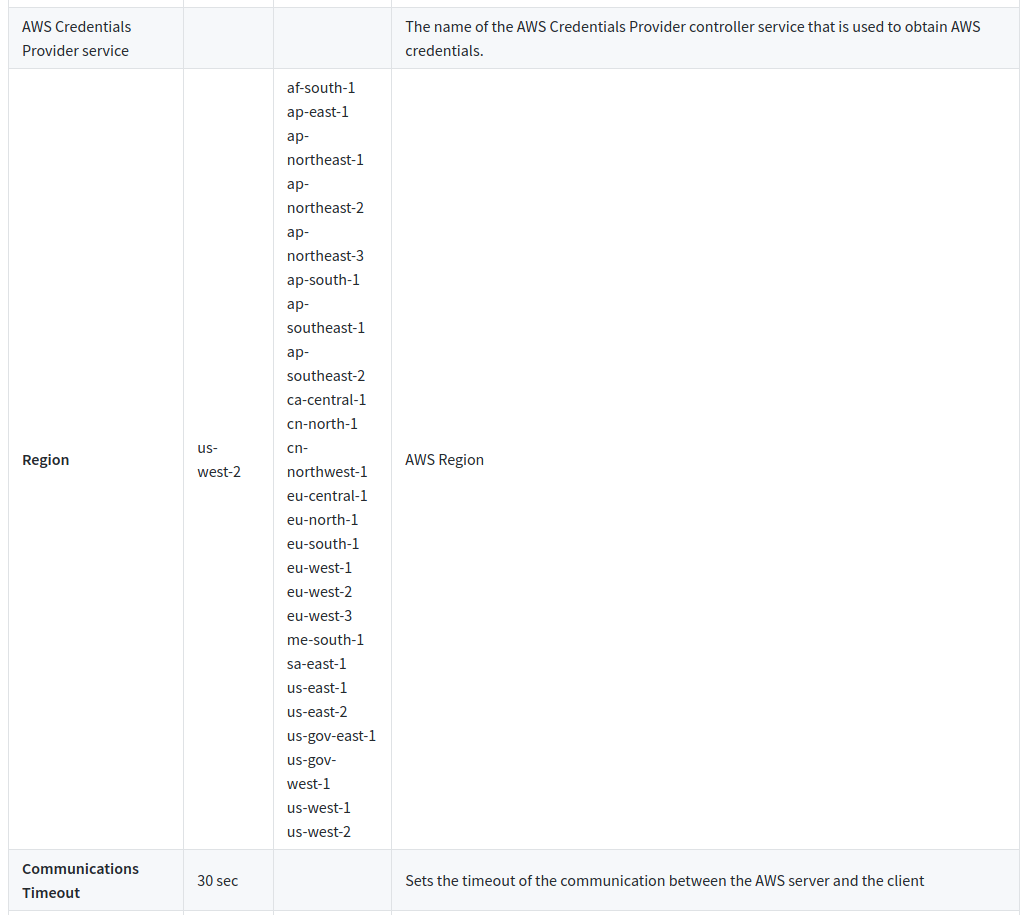+|AWS Credentials Provider service|||The name of the AWS Credentials Provider