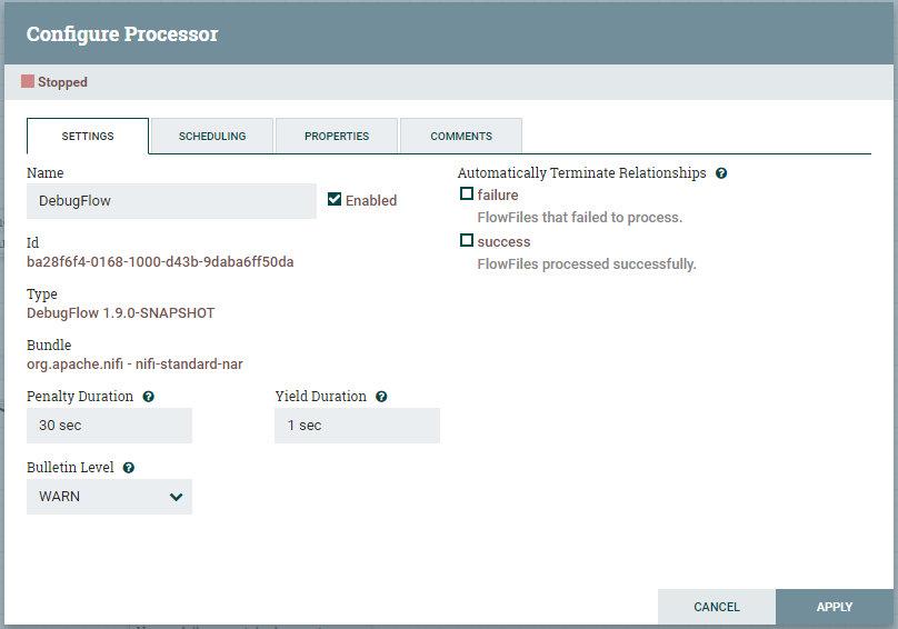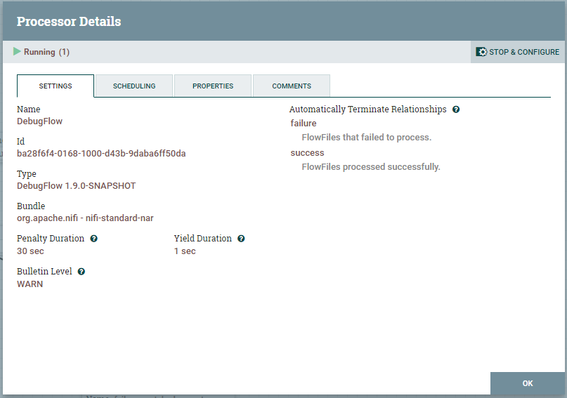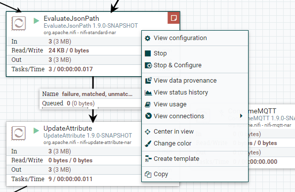 aeaversa commented on issue #3281: NIFI-5986 Adding "Stop & Configure" button functionality to Processor… URL: https://github.com/apache/nifi/pull/3281#issuecomment-476798684 Thanks @mcgilman . Yeah, my plan was to move the status bar code into its own jQuery based component that can be extrapolated onto any element. That way the code remains shared between both modals or whatever interface you want to consume the capability. As far as the context menu.... I too wasn't happy with the original icon, so I did redo it (see screen shots attached), I've also cleaned up the status bar button look and feel per @moranr 's feedback. Hopefully I've met the desired look and feel he was going for, but if not let me know. I know the goal of this feature was attempting to provide an efficient navigational route to get the processor to a state where the user can make configuration changes, hopefully via a single click. Adding the Stop & Configure option in the context menu does get the user there in one click, so are we sure we want to take that option away? My thanks again for all the great feedback on this.