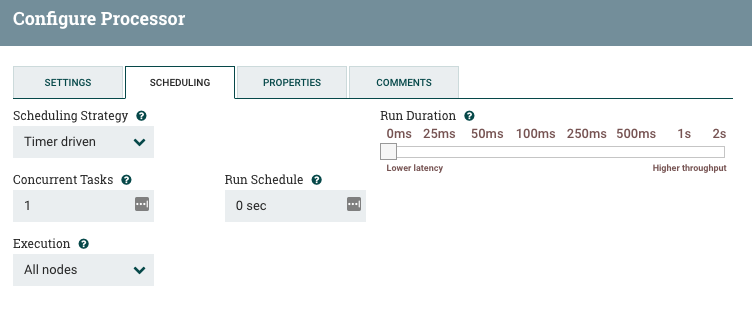 ########## File path: nifi-nar-bundles/nifi-slack-bundle/nifi-slack-processors/src/main/java/org/apache/nifi/processors/slack/ConsumeSlack.java ########## @@ -0,0 +1,234 @@ +/* + * Licensed to the Apache Software Foundation (ASF) under one or more + * contributor license agreements. See the NOTICE file distributed with + * this work for additional information regarding copyright ownership. + * The ASF licenses this file to You under the Apache License, Version 2.0 + * (the "License"); you may not use this file except in compliance with + * the License. You may obtain a copy of the License at + * + * http://www.apache.org/licenses/LICENSE-2.0 + * + * Unless required by applicable law or agreed to in writing, software + * distributed under the License is distributed on an "AS IS" BASIS, + * WITHOUT WARRANTIES OR CONDITIONS OF ANY KIND, either express or implied. + * See the License for the specific language governing permissions and + * limitations under the License. + */ +package org.apache.nifi.processors.slack; + +import java.io.StringReader; +import java.util.Arrays; +import java.util.Collections; +import java.util.HashSet; +import java.util.List; +import java.util.Objects; +import java.util.Set; +import java.util.concurrent.BlockingQueue; +import java.util.concurrent.LinkedBlockingQueue; +import java.util.concurrent.TimeUnit; +import java.util.function.Consumer; + +import javax.json.Json; +import javax.json.JsonException; +import javax.json.JsonObject; +import javax.json.JsonReader; + +import org.apache.nifi.annotation.behavior.InputRequirement; +import org.apache.nifi.annotation.behavior.InputRequirement.Requirement; +import org.apache.nifi.annotation.behavior.PrimaryNodeOnly; +import org.apache.nifi.annotation.behavior.TriggerSerially; +import org.apache.nifi.annotation.documentation.CapabilityDescription; +import org.apache.nifi.annotation.documentation.SeeAlso; +import org.apache.nifi.annotation.documentation.Tags; +import org.apache.nifi.annotation.lifecycle.OnScheduled; +import org.apache.nifi.annotation.lifecycle.OnShutdown; +import org.apache.nifi.annotation.lifecycle.OnUnscheduled; +import org.apache.nifi.components.PropertyDescriptor; +import org.apache.nifi.components.Validator; +import org.apache.nifi.expression.ExpressionLanguageScope; +import org.apache.nifi.flowfile.FlowFile; +import org.apache.nifi.processor.AbstractProcessor; +import org.apache.nifi.processor.ProcessContext; +import org.apache.nifi.processor.ProcessSession; +import org.apache.nifi.processor.Relationship; +import org.apache.nifi.processor.exception.ProcessException; +import org.apache.nifi.processor.util.StandardValidators; +import org.apache.nifi.processors.slack.controllers.SlackConnectionService; + +@Tags({"slack", "listen", "json", "events"}) +@CapabilityDescription("Listens on the provided slack connection controller service and " + + "forwards the messages in JSON text format.") +@SeeAlso({SlackConnectionService.class, FetchSlack.class}) +@InputRequirement(Requirement.INPUT_FORBIDDEN) +@PrimaryNodeOnly +@TriggerSerially +public class ConsumeSlack extends AbstractProcessor { + + private volatile SlackConnectionService slackConnectionService; + + private volatile List<String> matchingTypes; + + private volatile boolean matchAny; + + private BlockingQueue<SlackMessage> messageQueue; + + static final PropertyDescriptor SLACK_CONNECTION_SERVICE = new PropertyDescriptor.Builder() + .name("slack-connection-service") + .displayName("Slack Connection ControllerService") + .description("A ControllerService that provides a connection to slack service.") + .required(true) + .identifiesControllerService(SlackConnectionService.class) + .build(); + + static final PropertyDescriptor MESSAGE_TYPES = new PropertyDescriptor + .Builder() + .name("message-types") + .displayName("Message types") + .description("Message types to listen to. It will filter messages with the given types or " + + "listen to every type if empty. It is a coma separated list like: message,file_shared") + .required(false) + .addValidator(Validator.VALID) + .expressionLanguageSupported(ExpressionLanguageScope.VARIABLE_REGISTRY) + .build(); + + public static final PropertyDescriptor MAX_MESSAGE_QUEUE_SIZE = new PropertyDescriptor.Builder() + .name("Max Size of Message Queue") + .description("The maximum size of the internal queue used to buffer messages being transferred from the underlying channel to the processor. " + + "Setting this value higher allows more messages to be buffered in memory during surges of incoming messages, but increases the total " + + "memory used by the processor.") + .addValidator(StandardValidators.POSITIVE_INTEGER_VALIDATOR) + .defaultValue("10000") + .required(true) + .build(); + + static final Relationship SUCCESS_RELATIONSHIP = new Relationship.Builder() + .name("success") + .description("Incoming messages that matches the given types") + .build(); + + private static final String JSON_OBJECT_TYPE_KEY = "type"; + + private static final List<PropertyDescriptor> DESCRIPTORS = Collections.unmodifiableList(Arrays.asList( + SLACK_CONNECTION_SERVICE, MESSAGE_TYPES, MAX_MESSAGE_QUEUE_SIZE)); + + private static final Set<Relationship> RELATIONSHIPS = Collections.unmodifiableSet(new HashSet<>(Arrays.asList( + SUCCESS_RELATIONSHIP))); + + @Override + public Set<Relationship> getRelationships() { + return RELATIONSHIPS; + } + + @Override + public final List<PropertyDescriptor> getSupportedPropertyDescriptors() { + return DESCRIPTORS; + } + + @OnScheduled + public void onScheduled(final ProcessContext context) { + String messageTypes = context.getProperty(MESSAGE_TYPES).evaluateAttributeExpressions().getValue(); + messageTypes = messageTypes == null ? "" : messageTypes; + matchAny = messageTypes.isEmpty(); + matchingTypes = Arrays.asList(messageTypes.split(",")); + messageQueue = new LinkedBlockingQueue<>(context.getProperty(MAX_MESSAGE_QUEUE_SIZE).asInteger()); + } + + @OnUnscheduled + @OnShutdown + public void onUnscheduled()