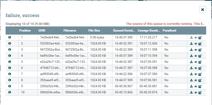 aeaversa commented on issue #3440: NIFI-6221 Adding 'Download' and 'View' content buttons to List Queue URL: https://github.com/apache/nifi/pull/3440#issuecomment-484142433 @mcgilman @moranr - Added the View and Download functionality as icon buttons in the actions column of the List Queue slick grid to allow users to quickly access the content without having to traverse the FlowFile details dialog. Attached are some screen shots, so please take a test drive and let me know your feedback.