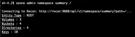 Example: `ozone admin namespace summary /`