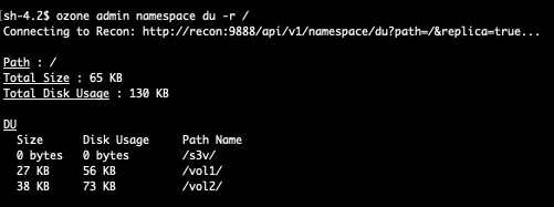 `ozone admin namespace du --replica /`