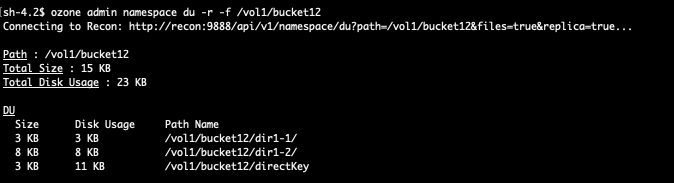 ozone admin namespace du --replica --file /vol1/bucket12