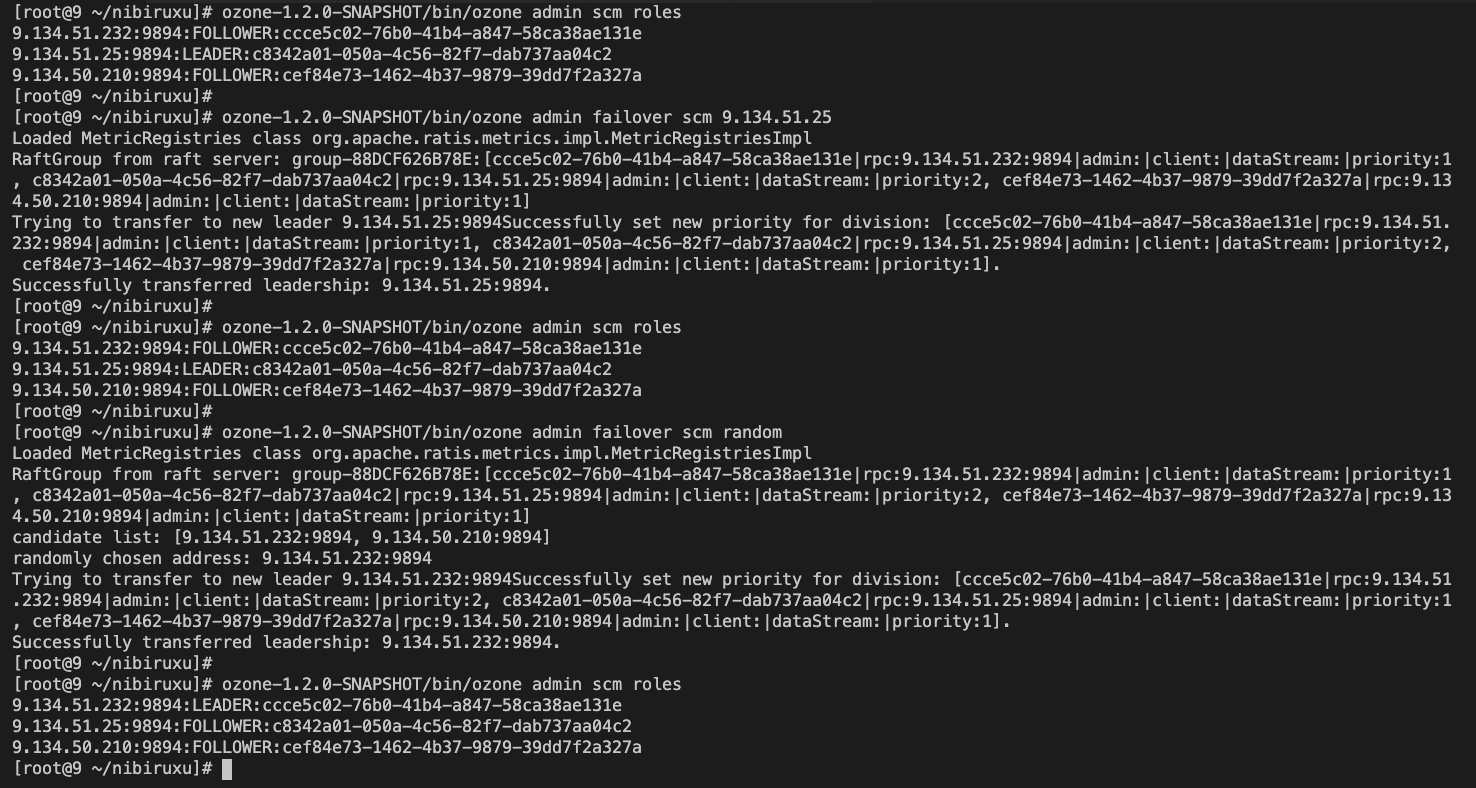 failover [SCM/OM] [host/host:port/'random'] ```, with optional IpAddr we can