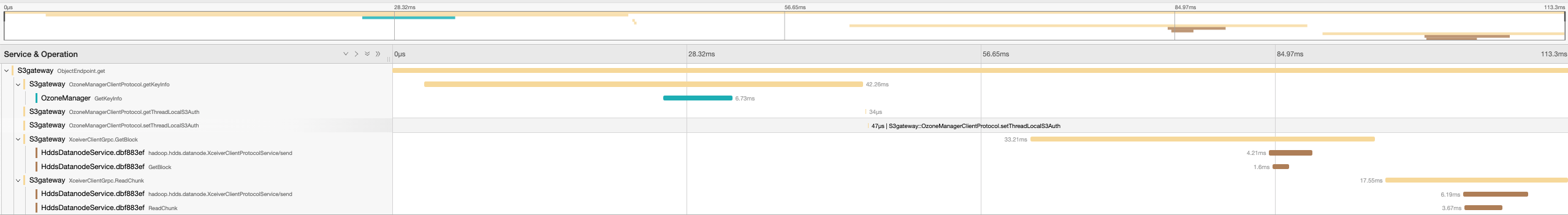 ## What changes were proposed in this pull request? This fix excludes `StreamingOutput` related operations' spans to be closed in `TracingFilter` and only close after `StreamingOutput` callback (i.e. `GetBlock` and `ReadChunk`) has finished and the data has been written to the destination ## What is the link to the Apache JIRA https://issues.apache.org/jira/browse/HDDS-7064 ## How was this patch tested? Manual test in the docker-compose environment (with tracing enabled) and submitting AWS get-object request to S3G endpoint.  -- This is an automated message from the Apache Git Service. To respond to the message, please log on to GitHub and use the URL above to go to the specific comment. To unsubscribe, e-mail: [email protected] For queries about this service, please contact Infrastructure at: [email protected] --------------------------------------------------------------------- To unsubscribe, e-mail: [email protected] For additional commands, e-mail: [email protected]