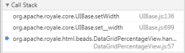 cristallium edited a comment on issue #519: SDK 0.9.6 <js:DataGridPercentageView/> bead work only on header DataGrid, not on cells URL: https://github.com/apache/royale-asjs/issues/519#issuecomment-543382193 Here is to help you debug the SDK  In the **DataGridPercentageView** function **handleInitComplete** ``` ... if (!isNaN(dgc.columnWidth)) { list.width = NaN; // <= we set NaN to width but it doesn't work list.percentWidth = Number(colWidth); } ... ``` I think the issue is here in **UIbase**.js ``` org.apache.royale.core.UIBase.prototype.setWidth = function(value, noEvent) { // Enter in function with value = NaN noEvent = typeof noEvent !== 'undefined' ? noEvent : false; if (this.org_apache_royale_core_UIBase__width !== value) { this.org_apache_royale_core_UIBase__width = value; this.positioner.style.width = value.toString() + 'px'; // <== HERE when value = NaN this.positioner.style.width is unchanged if (!noEvent) this.dispatchEvent(new org.apache.royale.events.Event("widthChanged")); } ``` I believe that in **UIbase** function **setWidth** , _this.positioner.style.width_ sould be set to NaN and not value + "px" if value is NaN