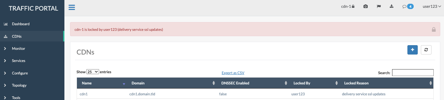 In Traffic Control, 2 actions are global to a CDN: 1. Snapshotting a CDN 2. Queuing servers updates for a CDN Because of this, incomplete changes can accidentally be pushed to the TM/TR via a cdn "snapshot" or to caches via a cdn "queue updates". This PR provides users w/ operations+ role the ability to "lock" a cdn which does 2 things: 1. adds lockedBy and lockedReason to a cdn 2. displays a persistent message in TP as such:  What this PR does NOT do: - it does not lock the database in any way (yet) - it does not prevent any api usage in any way (yet) <!-- ************ STOP!! ************ If this Pull Request is intended to fix a security vulnerability, DO NOT submit it! Instead, contact the Apache Software Foundation Security Team at [email protected] and follow the guidelines at https://www.apache.org/security/ regarding vulnerability disclosure. --> ## What does this PR (Pull Request) do? <!-- Explain the changes you made here. If this fixes an Issue, identify it by replacing the text in the checkbox item with the Issue number e.g. - [x] This PR fixes #9001 OR is not related to any Issue ^ This will automatically close Issue number 9001 when the Pull Request is merged (The '#' is important). Be sure you check the box properly, see the "The following criteria are ALL met by this PR" section for details. --> - [ ] This PR fixes #REPLACE_ME OR is not related to any Issue <!-- You can check for an issue here: https://github.com/apache/trafficcontrol/issues --> ## Which Traffic Control components are affected by this PR? <!-- Please delete all components from this list that are NOT affected by this Pull Request. Also, feel free to add the name of a tool or script that is affected but not on the list. Additionally, if this Pull Request does NOT affect documentation, please explain why documentation is not required. --> - CDN in a Box - Documentation - Grove - Traffic Control Client <!-- Please specify which; e.g. 'Python', 'Go', 'Java' --> - Traffic Monitor - Traffic Ops - Traffic Ops ORT - Traffic Portal - Traffic Router - Traffic Stats - Traffic Vault - CI tests ## What is the best way to verify this PR? <!-- Please include here ALL the steps necessary to test your Pull Request. If it includes tests (and most should), outline here the steps needed to run the tests. If not, lay out the manual testing procedure and please explain why tests are unnecessary for this Pull Request. --> ## If this is a bug fix, what versions of Traffic Control are affected? <!-- If this PR fixes a bug, please list here all of the affected versions - to the best of your knowledge. It's also pretty helpful to include a commit hash of where 'master' is at the time this PR is opened (if it affects master), because what 'master' means will change over time. For example, if this PR fixes a bug that's present in master (at commit hash '1df853c8'), in v4.0.0, and in the current 4.0.1 Release candidate (e.g. RC1), then this list would look like: - master (1df853c8) - 4.0.0 - 4.0.1 (RC1) If you don't know what other versions might have this bug, AND don't know how to find the commit hash of 'master', then feel free to leave this section blank (or, preferably, delete it entirely). --> ## The following criteria are ALL met by this PR <!-- Check the boxes to signify that the associated statement is true. To "check a box", replace the space inside of the square brackets with an 'x'. e.g. - [ x] <- Wrong - [x ] <- Wrong - [] <- Wrong - [*] <- Wrong - [x] <- Correct! --> - [ ] This PR includes tests OR I have explained why tests are unnecessary - [ ] This PR includes documentation OR I have explained why documentation is unnecessary - [ ] This PR includes an update to CHANGELOG.md OR such an update is not necessary - [ ] This PR includes any and all required license headers - [ ] This PR ensures that database migration sequence is correct OR this PR does not include a database migration - [ ] This PR **DOES NOT FIX A SERIOUS SECURITY VULNERABILITY** (see [the Apache Software Foundation's security guidelines](https://www.apache.org/security/) for details) ## Additional Information <!-- If you would like to include any additional information on the PR for potential reviewers please put it here. Some examples of this would be: - Before and after screenshots/gifs of the Traffic Portal if it is affected - Links to other dependent Pull Requests - References to relevant context (e.g. new/updates to dependent libraries, mailing list records, blueprints) Feel free to leave this section blank (or, preferably, delete it entirely). --> <!-- Licensed to the Apache Software Foundation (ASF) under one or more contributor license agreements. See the NOTICE file distributed with this work for additional information regarding copyright ownership. The ASF licenses this file to you under the Apache License, Version 2.0 (the "License"); you may not use this file except in compliance with the License. You may obtain a copy of the License at http://www.apache.org/licenses/LICENSE-2.0 Unless required by applicable law or agreed to in writing, software distributed under the License is distributed on an "AS IS" BASIS, WITHOUT WARRANTIES OR CONDITIONS OF ANY KIND, either express or implied. See the License for the specific language governing permissions and limitations under the License. --> ---------------------------------------------------------------- This is an automated message from the Apache Git Service. To respond to the message, please log on to GitHub and use the URL above to go to the specific comment. For queries about this service, please contact Infrastructure at: [email protected]