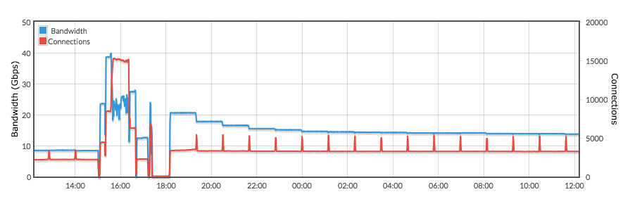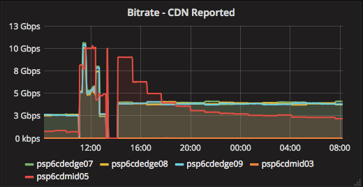 smalenfant opened a new issue #2257: TP: Bandwidth Reports Edge + Mid, should be only Edge URL: https://github.com/apache/incubator-trafficcontrol/issues/2257 Was looking at my bandwidth report vs what it shows on Traffic Portal and looks like Mid Cache bandwidth is displaying when Mids are in Reported mode. Might want to filter base on edge only. I started a 10Gbps load (Cleared the cache) at around 18h00...  Here's the bandwidth per cache: