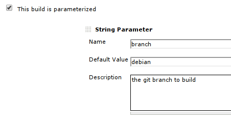 I'm used to have parameterized builds with a string parameter 'branch' and using "$branch" inside Git's "Branches to build" configuration, like: