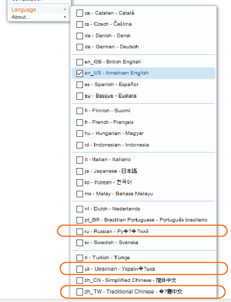 x = "Català" "Català" x "Català" 4) The JavaScript is messed up: x = J.i18n.Language.getLanguageList()[4].nativeLanguage "Catal+�" 5) When I replace j2s/core/corejmol.z.js with corejmol.js, it works. x = J.i18n.Language.getLanguageList()[4].nativeLanguage "Català" Hooray! The Google Closure Compiler is messing up. So you can do that yourself. This explains why it is only in the menu. I will remove Language.js from that compression, and we should be good to go. Bob On Thu, Sep 15, 2016 at 3:29 AM, Angel Herráez <[email protected]> wrote: > Dear Bob, > > I have noticed two issues with the rendering of the pop-up menu in > JSmol-html5 > > 1. The language submenu is way too long, and may become taller than the > screen, so in some page designs the lower half of the languages may be > unreachable. > > 2. The names of some languages display wrong characters (replaced by > symbols by the browser) > > I would like to try and improve these, but I am having trouble locating > the relevant source code where the rendering of the menu is generated. Can > you give me a pointer? > > Thanks > > [image: graphic] > > ------------------------------------------------------------ > ------------------ > > _______________________________________________ > Jmol-developers mailing list > [email protected] > https://lists.sourceforge.net/lists/listinfo/jmol-developers > > -- Robert M. Hanson Larson-Anderson Professor of Chemistry St. Olaf College Northfield, MN http://www.stolaf.edu/people/hansonr If nature does not answer first what we want, it is better to take what answer we get. -- Josiah Willard Gibbs, Lecture XXX, Monday, February 5, 1900