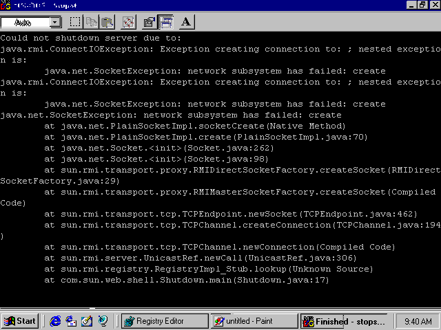 i get the message cannnot find classcom/sun/web/shell/shutdown >i aslo