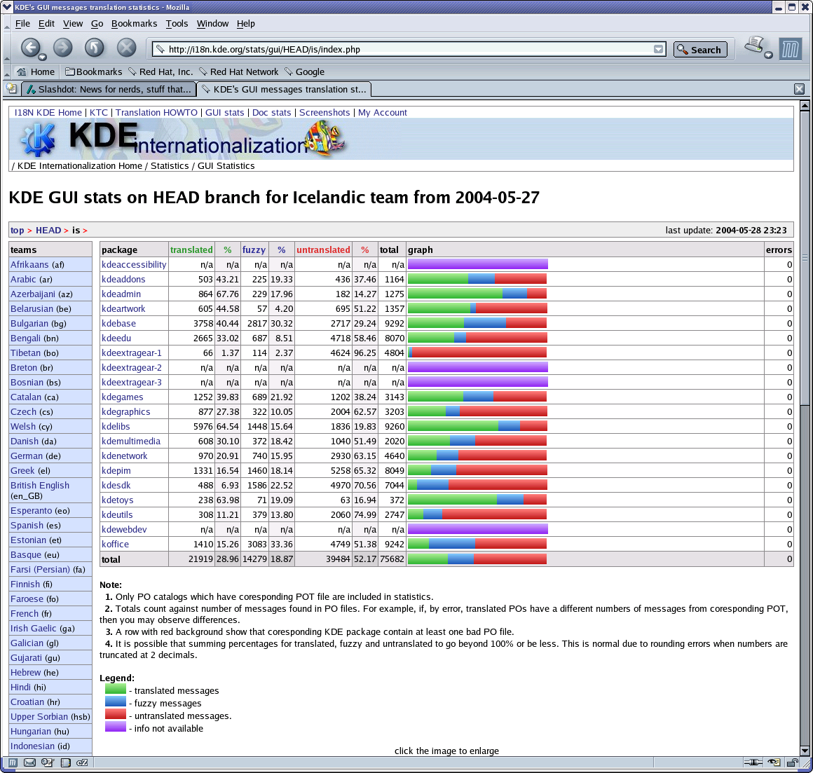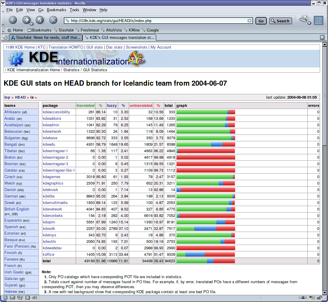 � HEAD voru 21919 ��ddir strengir, en eru n�na 49169 ;) ��ur en me� v�a sig � bak og fyrir vil �g benda � a� �a� var msgmerge sem �tti hei�urinn � mestu �arna. Svo allir draga puttana �r ********** og byrja � HEAD branch ! :) Bendi l�ka � a� http://i18n.ra.is er n�na me� 10 m�n updates � HEAD stats og n�justu skr�rnar fyrir ykkur. Til a� halda okkur inni � 3.3.0 �arf kdelibs, kdebase og */desktop_* a� kl�rast sem fyrst :) -- Rikki. -- HP Technical Support, RHCE, RHCX, HP-UX Certified Admin. -- Solaris 7 Certified Systems and Network Administrator. Bell Labs Unix -- Reach out and grep someone. Those who do not understand Unix are condemned to reinvent it, poorly. - 8< - - - Heimas��a �essa p�stlista er: http://www.molar.is/listar/kde-isl/ �ar eru lei�beiningar um �skrift a� listanum og hugsanlega br�fasafn. � http://www.molar.is/ er �keypis �slensk p�stlista�j�nusta. - - - >8 -