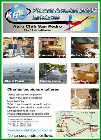 ----- Original Message ----- From: Eduardo Barros Sent: Tuesday, July 25, 2006 7:20 PM Subject: Invitacion al 2º encuentro de constructores de Kr, San Pedro 2006 Estimados amigos, ya tenemos el organigrama del encuentro con los horarios estimados y el listado de charlas, con sus respectivos disertantes. Pueden consultarlo en el siguiente link que periódicamente iremos actualizando: http://www.aeroclubsanpedro.com.ar/encuentro_kr_2006.htm Invitamos a todos los que les guste la avivación experimental a pasar dos jornadas entre amigos y charlando de los que nos gusta.