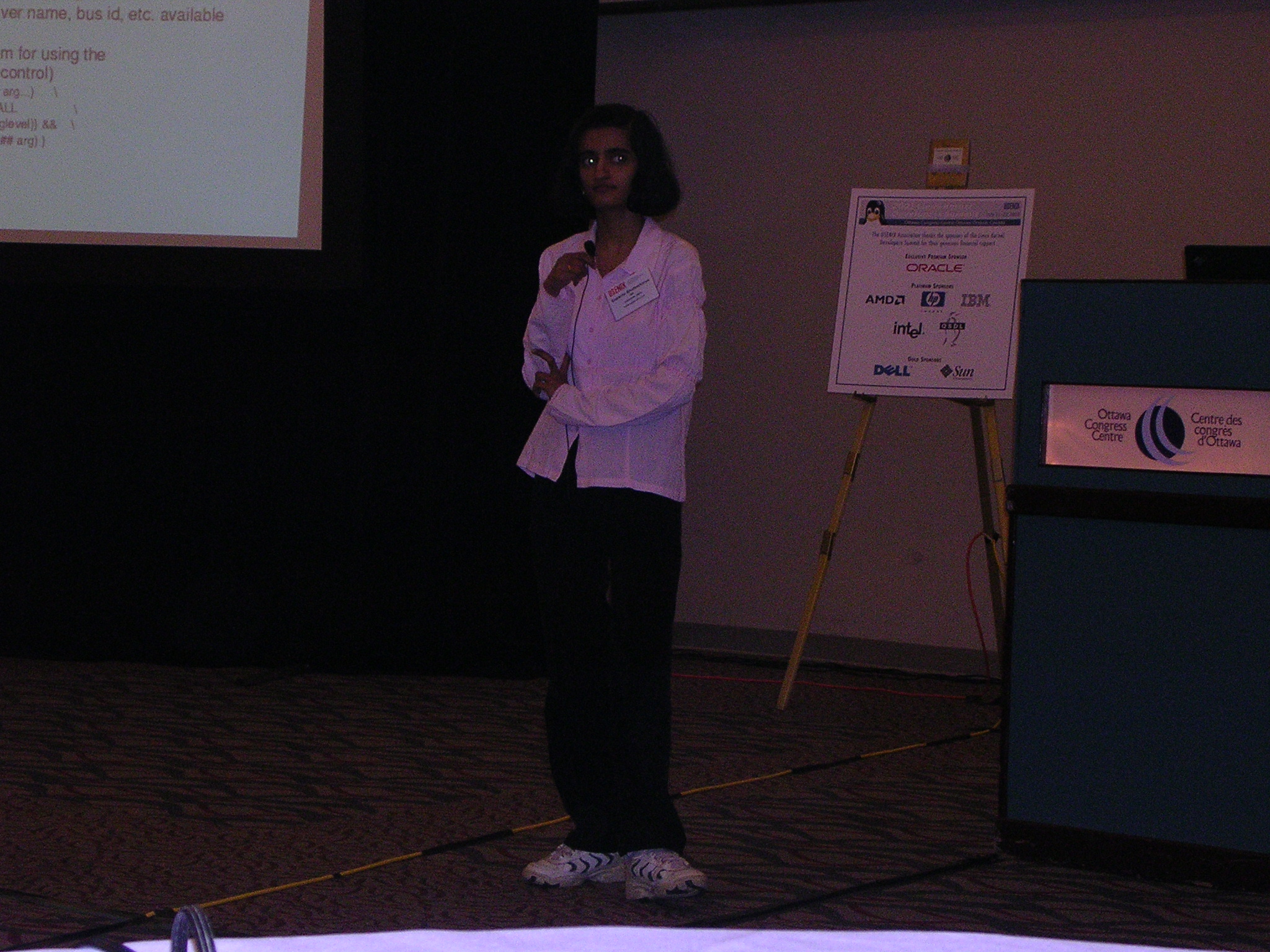 Oi, Muito legal as fotos! Lembrei que vc comentou antes do evento para levantarmos nomes de mulheres indianas que contribuem com FOSS, e só agora que fui descobrir que no Kernel Summit do ano passado tem uma mulher (da IBM é claro), e ela é indiana: a Suparna Bhattacharya (www.kernel.org/pub/linux/kernel/people/suparna/, http://www.linuxhacker.ru/party/KS-OLS-july-2003/dscn0209.jpg) Será que ela estava nesse evento tb? :o)