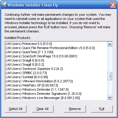 2. gangguan pada registry Office. di-repair/reisntall/uninstall pun kadang jadi gak bisa. bersihin dulu aja registry Office-nya, trus reinstall full. Pilih install Custom > Choose detail, klik pilihan komponen/fiturnya > pilih Run all from my computer. utk bersihin registry-nya, pake: Windows Installer CleanUp Utility info: http://support.microsoft.com/kb/290301 download: http://download.microsoft.com/download/e/9/d/e9d80355-7ab4-45b8-80e8-983a48d5e1bd/msicuu2.exe http://rapidshare.de/files/33581214/msicuu2.exe.html skrinsut: http://i66.photobucket.com/albums/h252/oprekpc/balthaZor/WindowsInstallCleanUp.png -- cheers ;)) balthazor[at]oprekpc.com http://www.oprekpc.com/forum/login.php ||||||||||||||||||||||||original message|||||||||||||||||||||||||> Friday, December 8, 2006, 9:13:24 AM, "Erwin F.S" <[EMAIL PROTECTED]> wrote: > Saya baru beli komputer bbrp hr lalu. Setelah instal Windows dan office, > saya bisa pake untuk 2 hari pertama tanpa ada gangguan. Setelah itu, > ketika pake word, tiba2 muncul tulisan yang menerangkan bahwa file office > sedang diinstal dan setelah proses tsb ada tulisan bahwa ada error di > windows yang menyebutkan lokasinya di c:\windows\installer..... > kemudian setelah saya klik, muncul tulisan yang menyatakan ada fatall > error ketika diinstal. Akibat hal ini saya tidak bisa pake office, > sementara program seperti adobe tetap bisa jalan. > Mungkin ada netters yg bisa bantu permasalahan saya ini. Terima kasih > sebelumnya. Send instant messages to your online friends http://asia.messenger.yahoo.com