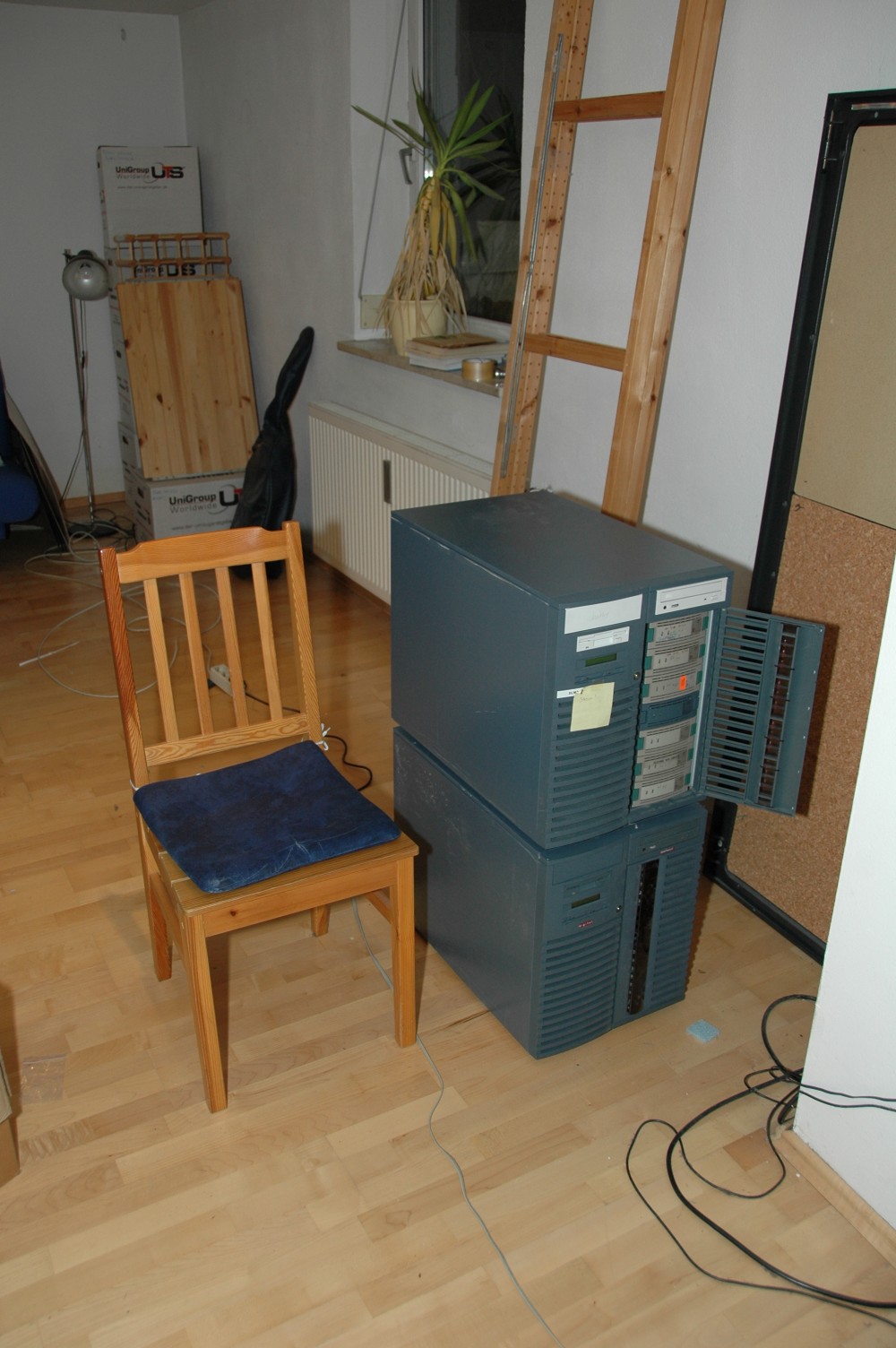 I have two AS1200 (AlphaServers) to donate. They're nice machines, but I don't use them. One has two 400MHz CPUs (B3007-AA) and 512MB RAM, the other has one 533MHz CPU (B3007-CA) and 256MB RAM. They have lots of disks internally (2 and 4GB drives). They have several SCSI controllers installed and are in fact set up to operate as a TruCluster with shared storage, which is housed on two BA356 StorageWorks shelves stuffed with 2 and 4GB drives. If someone were interested in running this as a TruCluster, I also have two MemoryChannel cards and a cable. TruCluster traditionally uses MemoryChannel as its cluster interconnect. It can, however, use a standard ethernet P2P connection. Each system has two 100mbit ethernet controllers installed. The boxes are also fitted with redundant power supplies. Dimensions of a AS1200: height=47cm, width=36cm, depth=60cm For a photo see (one system is stacked on top of the other!): http://www.spielwiese.de/rob/Pictures/as1200-1000x1504.jpg I live in Munich, and posting them would be prohibitively expensive, I suspect. any interest? If yes, please contact me ASAP. Rob Urban Here is the output of "show config" for each system: dual-400MHz config: -------------------------- P00>>>show config Digital Equipment Corporation AlphaServer 1200 Console V5.7-4 OpenVMS PALcode V1.21-2, Digital UNIX PALcode V1.23-2 Module Type Rev Name System Motherboard 0 0000 mthrbrd0 Memory 512 MB DIMM 0 0000 mem0 CPU (4MB Cache) 3 0001 cpu0 CPU (4MB Cache) 3 0001 cpu1 Bridge (IOD0/IOD1) 600 0032 iod0/iod1 PCI Motherboard a 0000 saddle0 Bus 0 iod0 (PCI0) Slot Option Name Type Rev Name 1 PCEB 4828086 0015 pceb0 2 S3 Trio64/Trio32 88115333 0044 vga0 3 DECchip 21140-AA 91011 0020 tulip0 4 DEC KZPSA 81011 0000 pks0 Bus 1 pceb0 (EISA Bridge connected to iod0, slot 1) Slot Option Name Type Rev Name Bus 0 iod1 (PCI1) Slot Option Name Type Rev Name 1 NCR 53C810 11000 0002 ncr0 2 QLogic ISP10X0 10201077 0005 isp0 3 NCR 53C810 11000 0002 ncr1 4 DE600-AA 12298086 0008 ei0 single-533MHz config: -------------------------- P00>>>show config Compaq Computer Corporation AlphaServer 1200 Console V6.0-4 OpenVMS PALcode V1.21-2, Digital UNIX PALcode V1.23-2 Module Type Rev Name System Motherboard 0 0000 mthrbrd0 Memory 64 MB DIMM 0 0000 mem0 Memory 64 MB DIMM 0 0000 mem1 Memory 64 MB DIMM 0 0000 mem2 Memory 64 MB DIMM 0 0000 mem3 CPU (4MB Cache) 3 0003 cpu0 Bridge (IOD0/IOD1) 600 0032 iod0/iod1 PCI Motherboard a 0000 saddle0 Bus 0 iod0 (PCI0) Slot Option Name Type Rev Name 1 PCEB 4828086 0015 pceb0 2 S3 Trio64/Trio32 88115333 0054 vga0 3 DE500-BA 191011 0030 tulip0 4 DEC KZPSA 81011 0000 pks0 Bus 1 pceb0 (EISA Bridge connected to iod0, slot 1) Slot Option Name Type Rev Name Bus 0 iod1 (PCI1) Slot Option Name Type Rev Name 1 NCR 53C810 11000 0002 ncr0 2 QLogic ISP10X0 10201077 0005 isp0 3 DEC PCI MC 181011 000E mc0 4 DE600-AA 12298086 0008 ei0