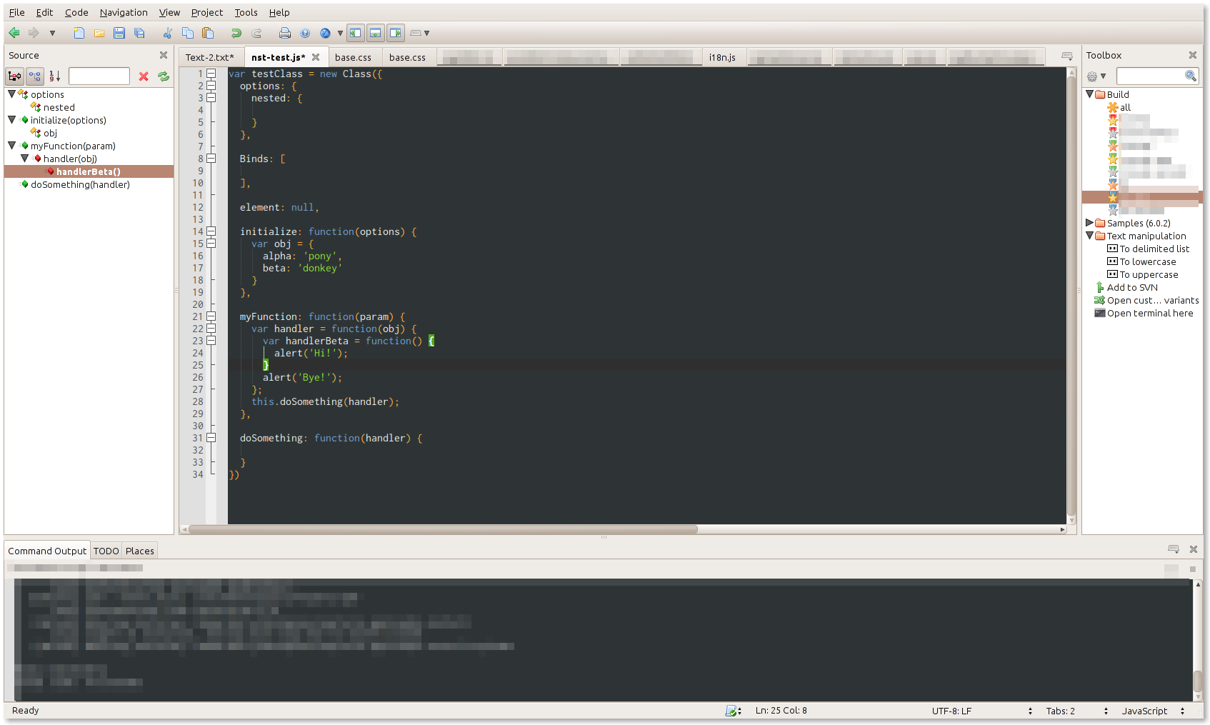 On Wed, Dec 8, 2010 at 4:53 PM, Barry van Oudtshoorn < [email protected]> wrote: > I know that this is a late reply, but I've just found the perfect extension > for Komodo that will give you proper outlining of MooTools classes: "NST". I > put a quick screenshot up here: http://www.barryvan.com.au/temp/nst.png . > You can see how it correctly looks inside member functions and objects, and > tracks your position in the file, too. I'm using Komodo Edit 6. > > > On 04/12/10 16:38, Dimitar Christoff wrote: > >> "Mootools API Catalogs 1.2.1 could not be installed because it is not >>> compatible with Komodo IDE 6.0.2." >>> >>> Cant find Komodo v5 on the activestate site either, never easy... >>> >>> Are you using Komodo v5? >>> >> >> nah, 6.0. >> to install it, i had to (if i remember correctly): >> >> rename the file from .xpi to .zip >> >> extract the data >> >> go to preferences / code intelligence >> >> add a new catalog> point to data >> >> >> >> > > -- > Barry van Oudtshoorn > www.barryvan.com.au > > Not sent from my Apple πPhone. > >