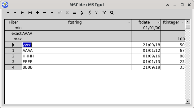 Hum, like some demos of Martin, not easy to understand how it works. But finally I get it and it works ok here. You need to assign some value to the filter, clicking on < or > or = and select a column (or more). Then click on the filter icon to have the result. See picture: https://user-images.githubusercontent.com/3421249/196784262-20aeb32f-48d2-4a0a-a1e1-2e6f0169944a.png https://user-images.githubusercontent.com/3421249/196784289-5ea5cbe3-fb7d-4ed0-b983-9263127a8cfd.png But maybe i did not catch the problem, if so, please explain. Fre;D ________________________________ De : mohamed hamza <[email protected]> Envoyé : mercredi 19 octobre 2022 20:32 À : General list for MSEide+MSEgui <[email protected]> Objet : [MSEide-MSEgui-talk] FILTER Hi all, I think there is no more hope to change the dbfilter module in mselib? Can someone try(, If interested mseuniverse samples/db/ dbfilter2 to see the bug or I am wrong. ? You can try with integer and <=, >= operators. Regards. Med.
