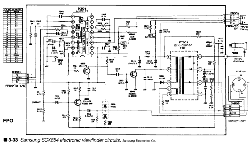 http://www.vitriol.com/images/tech/SCX854-viewfinder.png - John > I just wanted to draw up an schematic, but i don't know what sits inside a > big white potted "box" - presumably some kind of high voltage tripler > circuit. I have about 1000 VAC going into it and around 5 KV on the EHT > suction cup. That's a little more serious than the little camcorder viewfinders! They run maybe 600V on the 2nd anode. I'm guessing you're right - the box is either a tripler or a flyback and tripler (if you don't see anything else that might be a flyback). Judging from your pictures, I'm guessing it's the flyback/tripler. > Anyone have a general schematic for one of these 1,5 - 2" CRT Viewfinders and > would like to share ? > > The VF is based around an AN294 IC (removed completely now) The one posted above is based on an AN25125 IC. - John -- You received this message because you are subscribed to the Google Groups "neonixie-l" group. To post to this group, send an email to [email protected]. To unsubscribe from this group, send email to [email protected]. For more options, visit this group at http://groups.google.com/group/neonixie-l?hl=en-GB.