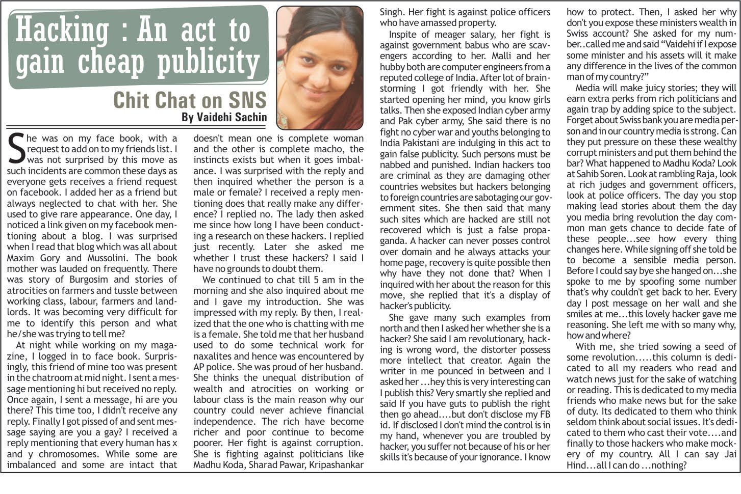 Some people are doing things for the fame and name Please see this article http://3.bp.blogspot.com/_1Rgvx77sTm4/TKEDUKH3QdI/AAAAAAAAFC8/vqI_ImnpLEU/s1600/hacking_back+page.jpg -- You received this message because you are subscribed to the Google Groups "nforceit" group. To post to this group, send an email to [email protected]. To unsubscribe from this group, send email to [email protected]. For more options, visit this group at http://groups.google.com/group/nforceit?hl=en-GB.