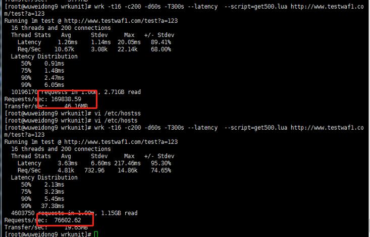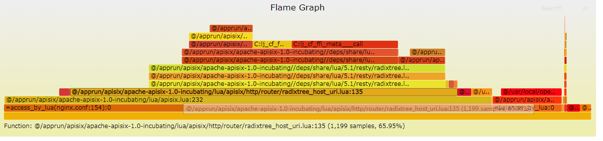 wwd5613 opened a new issue #1233: bug: route by radixtree_host_uri Stress Testing cannot reach expect URL: https://github.com/apache/incubator-apisix/issues/1233 ### I set 10 to 5000 route with host,like { "uri": "*", "hosts": ["www.websockettest1.com"], "vars":[["server_port","==","80"]], "upstream": { "type": "roundrobin", "nodes": { "172.28.73.60:80": 1 } } } and set config.yaml router: http: 'radixtree_host_uri' ### Environment * apisix version (cmd: `apisix version`): 1.0 * OS: Centos7.4 8c16g ### Minimal test code / Steps to reproduce the issue 1.wrk -t16 -c200 -d300s -T300s --latency --script=get500.lua http://www.websockettest1/test?a=123 2.get500.lua wrk.method = "GET" wrk.host = "www.testwaf1.com" wrk.headers["Content-Type"] = "application/x-www-form-urlencoded" wrk.headers["Accept-Encoding"] = "gzip, deflate" wrk.headers["Accept-Language"] = "zh-CN,zh;q=0.9" wrk.headers["Cache-Control"] = "no-cache" wrk.headers["Connection"] = "keep-alive" --wrk.headers["Connection"] = "close" wrk.headers["Cookie"] = "JSESSIRE45ONID=988051FA6F8638AD356HY0FC40DEB861604F677676GHG878123EDGTE1245; name=%22wuwng%22" wrk.headers["Host"] = "www.websockettest1" wrk.headers["Referer"] = "http://www.websockettest1/" wrk.headers["User-Agent"] = "Mozilla/5.0 (Windows NT 6.1; Win64; x64) AppleWebKit/537.36 (KHTML, like Gecko) Chrome/75.0.3770.100 Safari/537.36" wrk.headers["Pragma"] = "no-cache" ### What's the actual result? (including assertion message & call stack if applicable)  Stress Testing Contrast: tps of source site is 16W, tps of source site pass by apisix is 7W and cpu is near 100% with 20% sys cost.  and Flame Graphs is as follow  ### What's the expected result? tps can be higher
