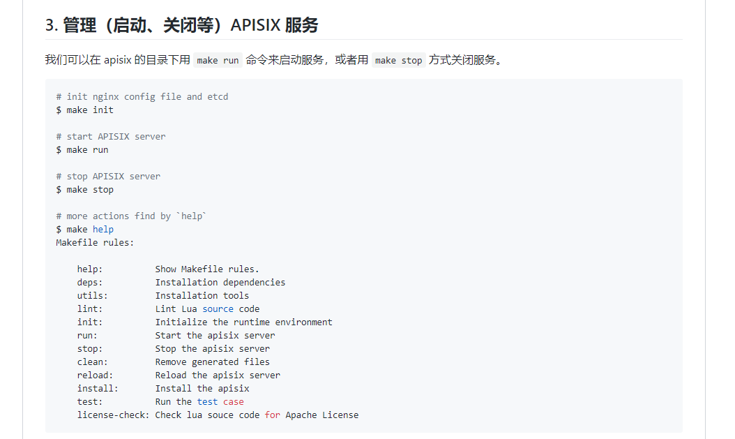 csluoqi opened a new issue #1341: bug: 这里启动方式是通过源码安装apisix后,在源码目录里执行的命令。如果是通过yum命令安装的则不适合 URL: https://github.com/apache/incubator-apisix/issues/1341 ### Issue description ### Environment * apisix version (cmd: `apisix version`): * OS: ### Minimal test code / Steps to reproduce the issue 1. 2. 3. ### What's the actual result? (including assertion message & call stack if applicable)  ### What's the expected result? 添加说明,如果是通过源码安装的可以通过这样的命令启动关闭apisix