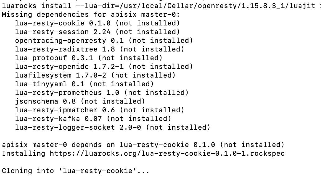An other problem, I also try to install via source code, is hard to install luarocks dependencies in china, i have never succeed even one time, it get stuck there, it's there any solution?  ---------------------------------------------------------------- This is an automated message from the Apache Git Service. To respond to the message, please log on to GitHub and use the URL above to go to the specific comment. For queries about this service, please contact Infrastructure at: [email protected]