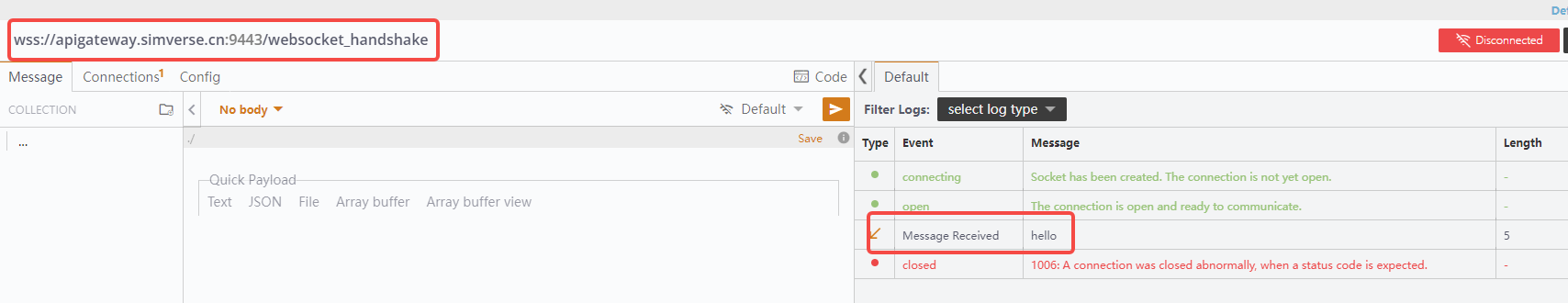 > For this websocket example , i try to config useing ["scheme": "http"] , either ws or wss , It works fine    -- This is an automated message from the Apache Git Service. To respond to the message, please log on to GitHub and use the URL above to go to the specific comment. To unsubscribe, e-mail: [email protected] For queries about this service, please contact Infrastructure at: [email protected]