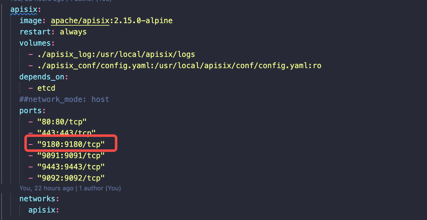 > hi, Can you provide more information? I post my docker-compose.yml config, export the 9180 port -- This is an automated message from the Apache Git Service. To respond to the message, please log on to GitHub and use the URL above to go to the specific comment. To unsubscribe, e-mail: [email protected] For queries about this service, please contact Infrastructure at: [email protected]