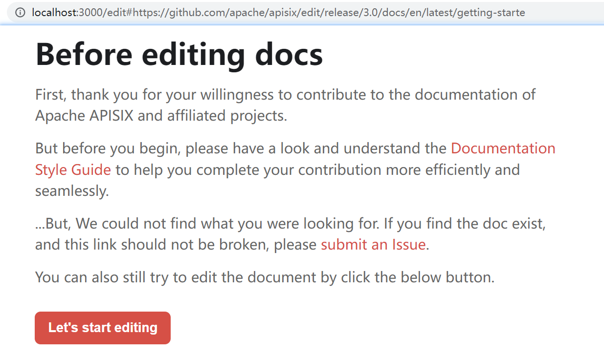 Fixes: #786 Changes: fix "edit this pages", pls see screenshots below. <!-- Add here what changes were made in this pull request and if possible provide links showcasing the changes. --> Screenshots of the change: en valid page:  en invalid page:  <!-- Add screenshots depicting the changes. --> -- This is an automated message from the Apache Git Service. To respond to the message, please log on to GitHub and use the URL above to go to the specific comment. To unsubscribe, e-mail: [email protected] For queries about this service, please contact Infrastructure at: [email protected]